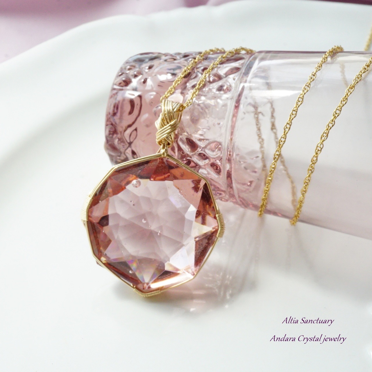 ▼太陽のように光を放射するカットが美しい「ローズゴールド」の《SunFlowerカット》女神巻き®ペンダント
