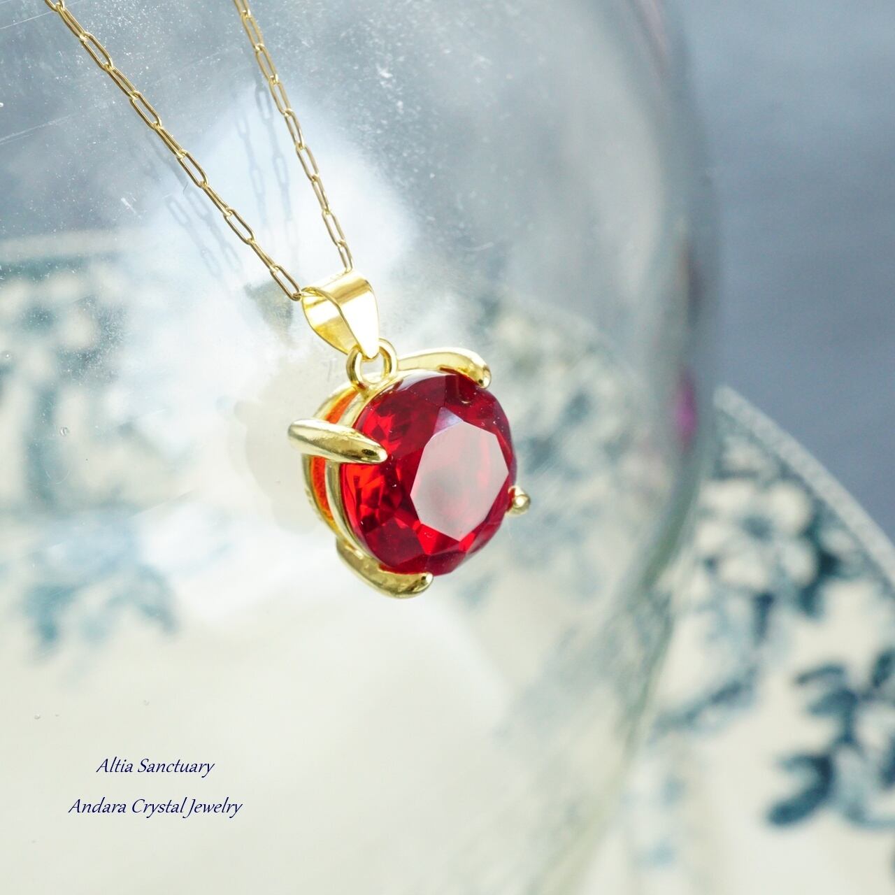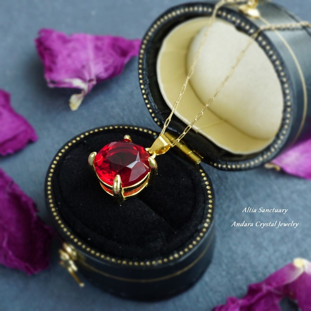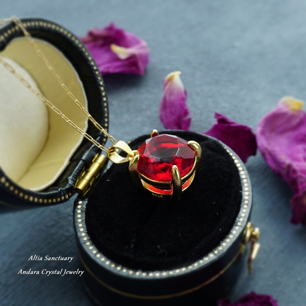 深い緋色のレッドゴールドアンダラクリスタル「スカーレットシフト」の小さな爪留めペンダントトップです。