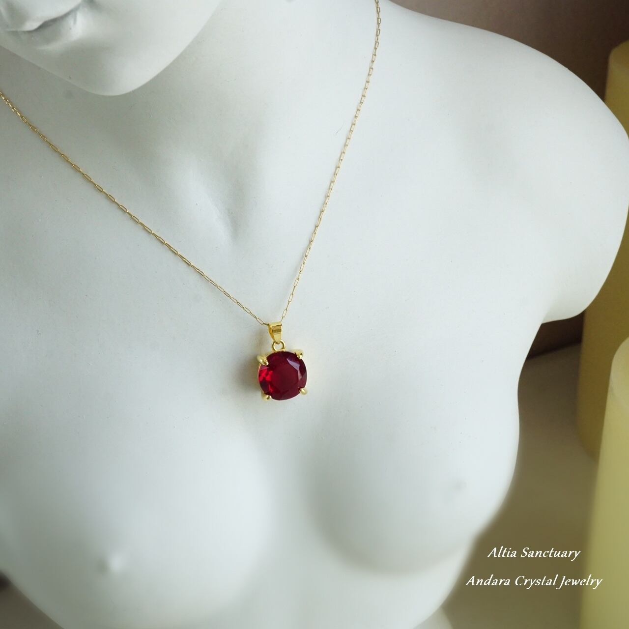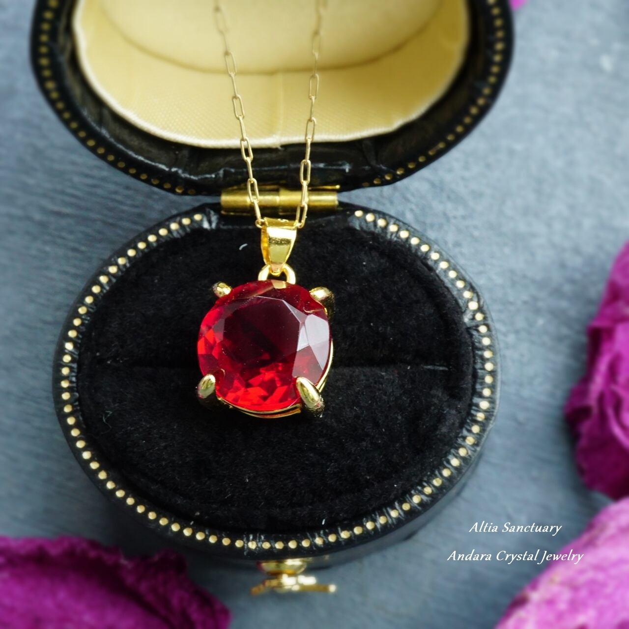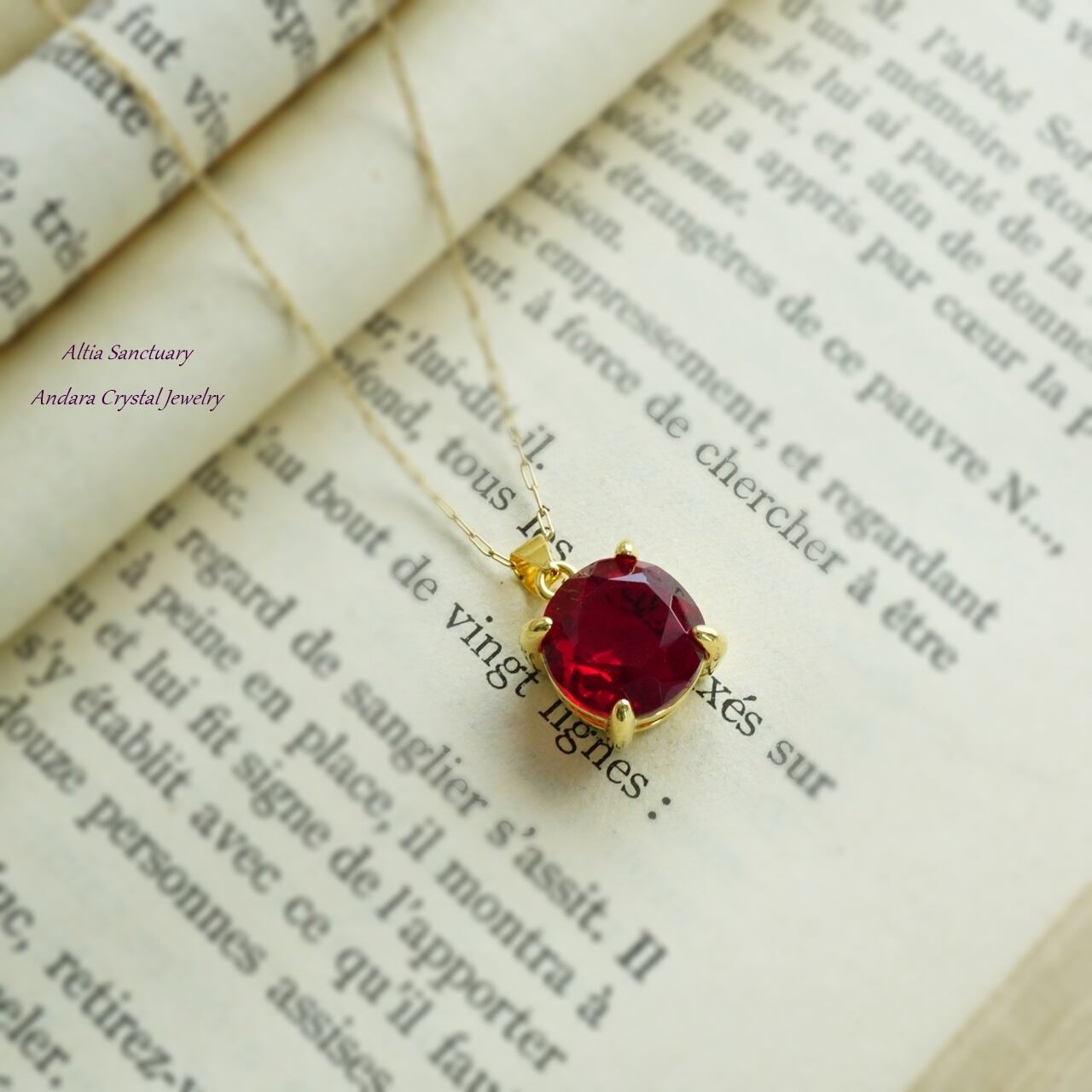 深い緋色のレッドゴールドアンダラクリスタル「スカーレットシフト」の小さな爪留めペンダントトップです。