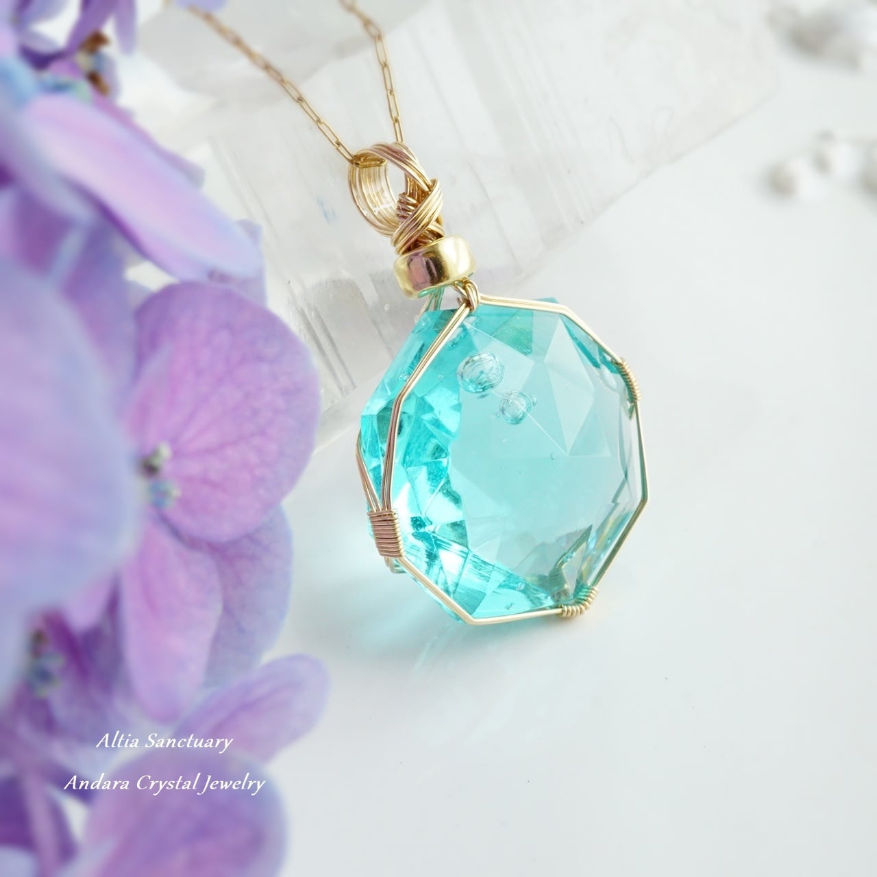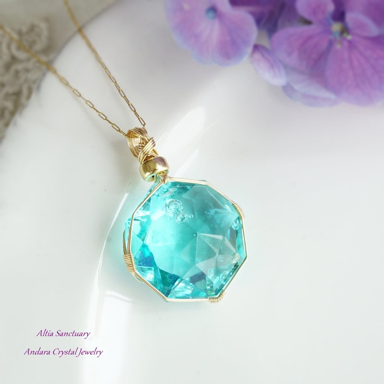 【M様オーダー】レア!アンダラクリスタル(イナンナズウィズダムwithバブル)オクタゴンカット ロンデル付き女神巻き®ペンダントトップ