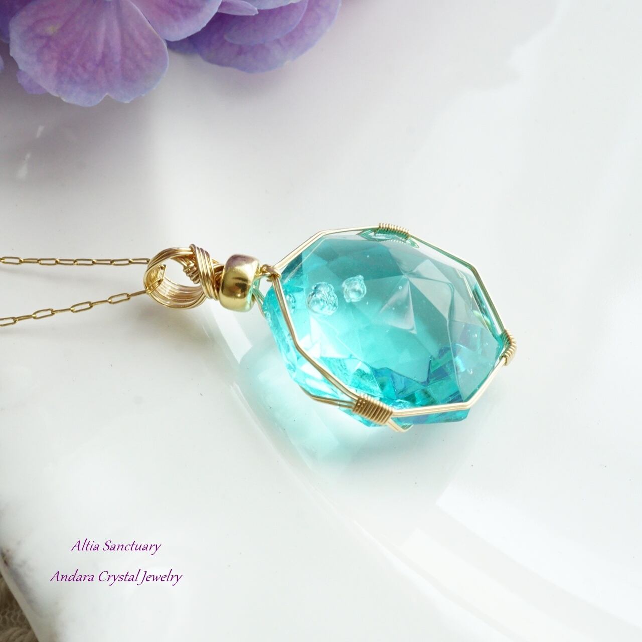 愛と美と豊穣の女神イナンナの特性を持つ明るいブルーグリーン「イナンナズウィズダム」です。大小の気泡を内包している美しいアンダラクリスタルです。