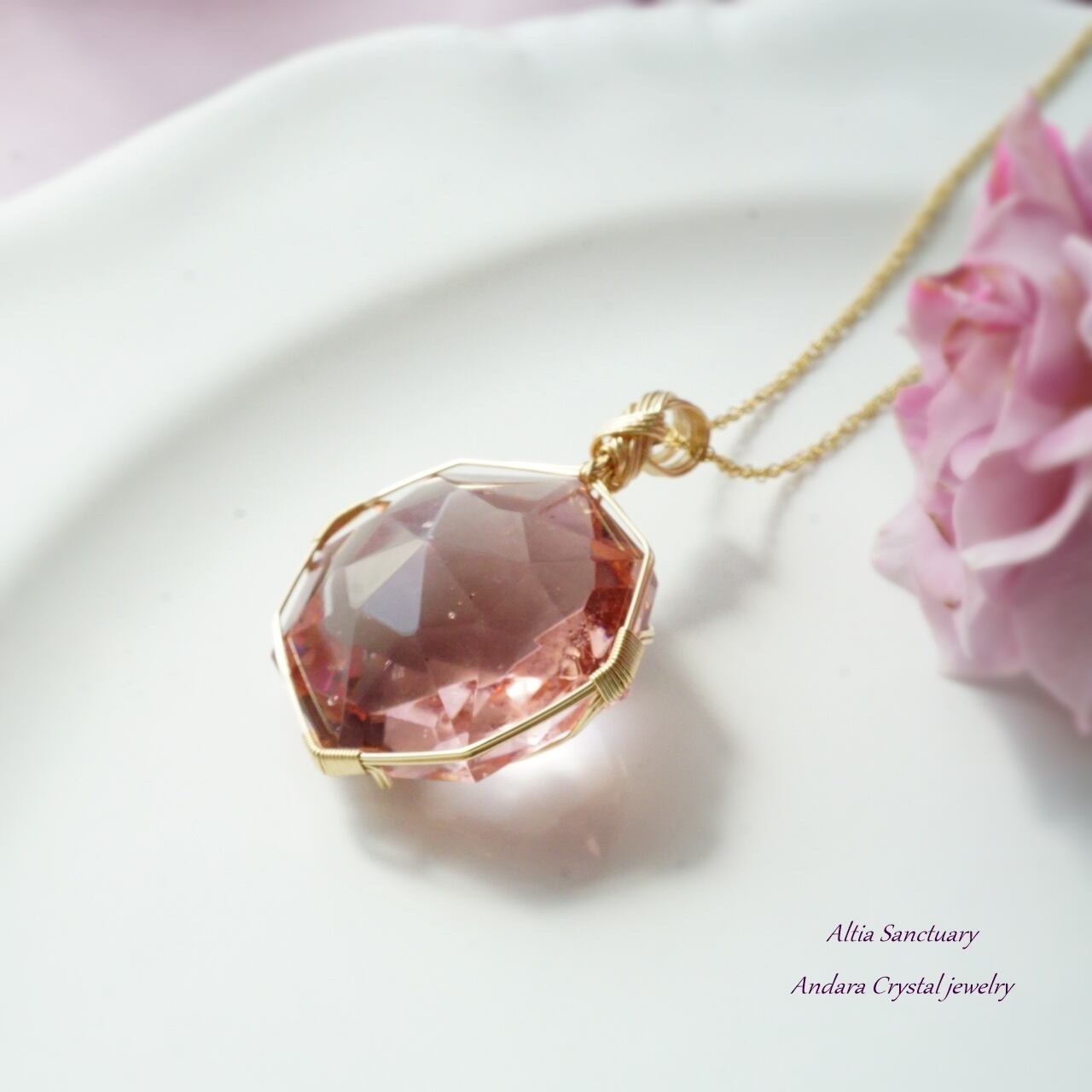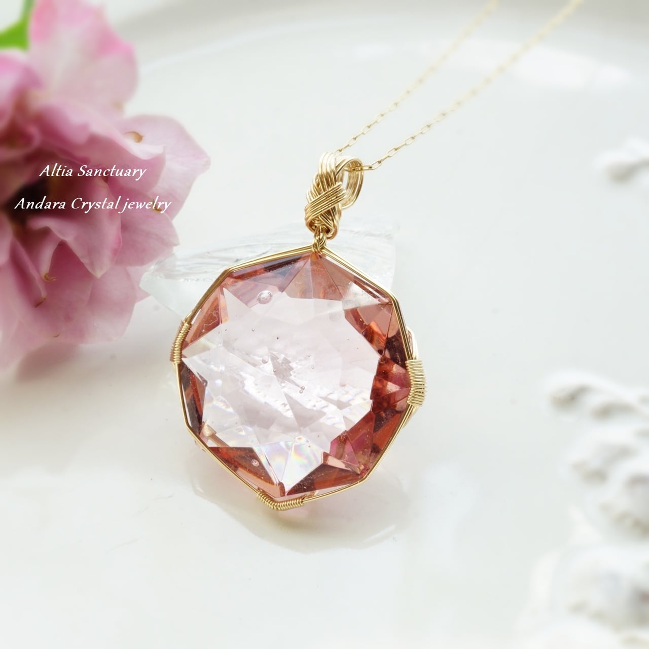 レア!アンダラクリスタル(ローズゴールド)~Sunflower~八角形カット-女神巻き®ペンダントトップ【送料無料】*