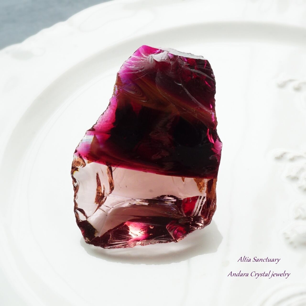 このアンダラは、ローズゴールドにラズベリーとヴァイオレットアメジスト、シャーマンなど、様々な特性が含まれる希少なアンダラクリスタルです。