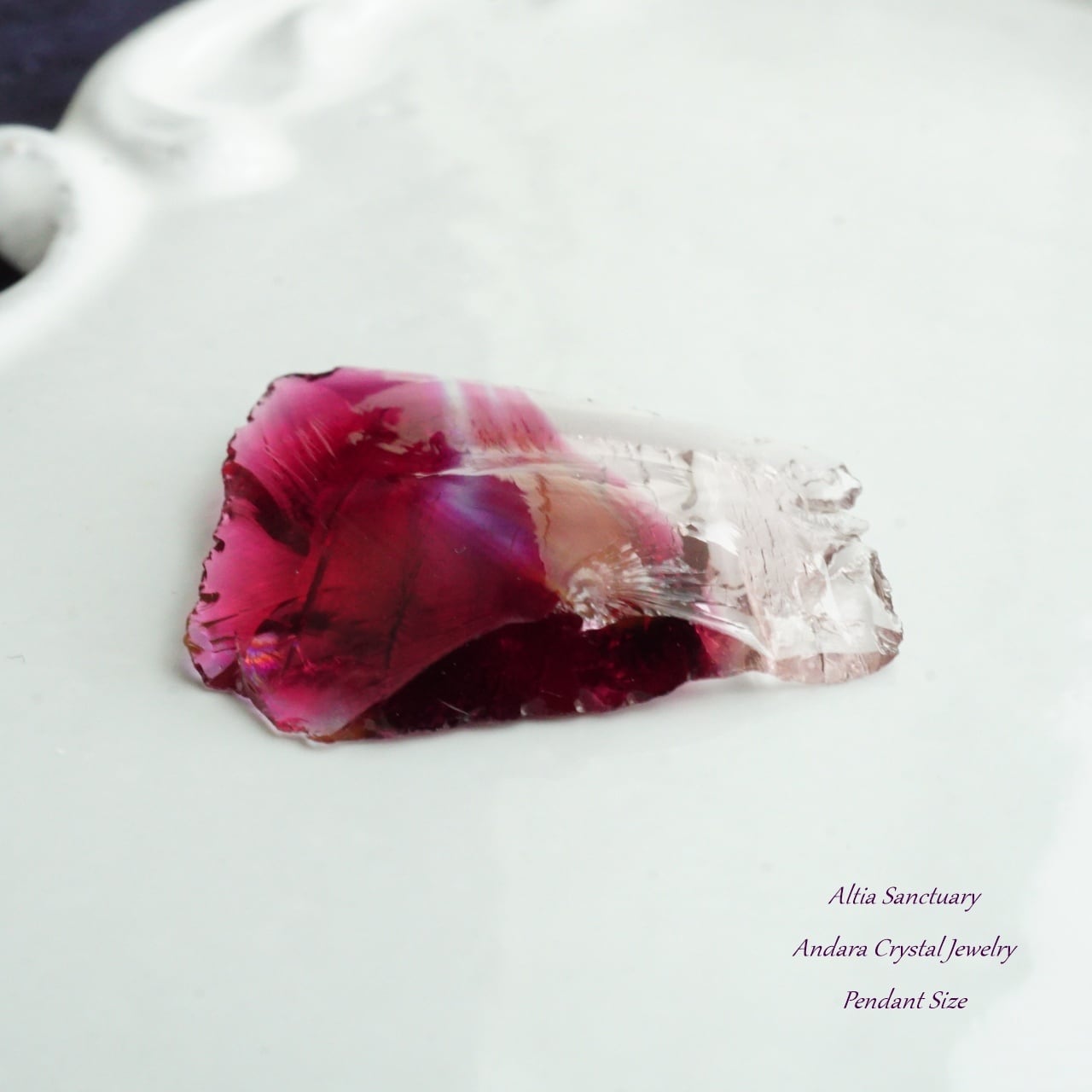 このアンダラは、ローズゴールドにラズベリーとヴァイオレットアメジストなど、様々な特性が含まれる希少なアンダラクリスタルです。