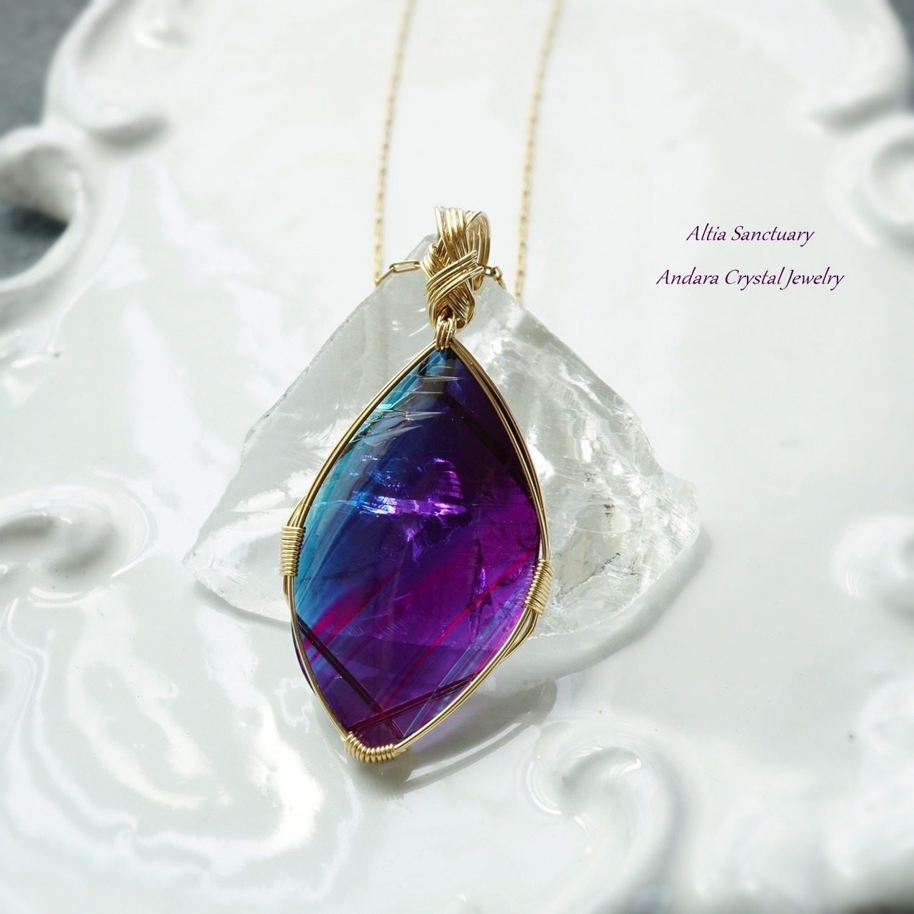 【W様オーダー】超レア!マルチレインボーアンダラクリスタル(ヴァイオレットアメジスト/ラズベリーレゾナンス/スターライトエレスチャルサファイア等)マーキス型 女神巻き®ペンダントトップ-1109