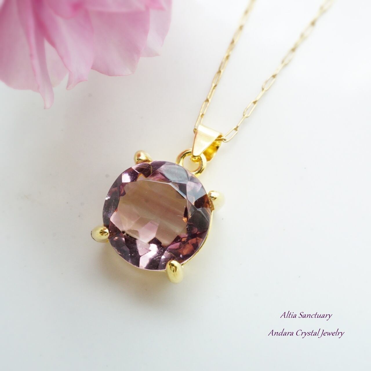 アンダラクリスタル(ソブリンアメジスト)のダイヤモンドカット1粒のシンプルな爪留めペンダントトップです。