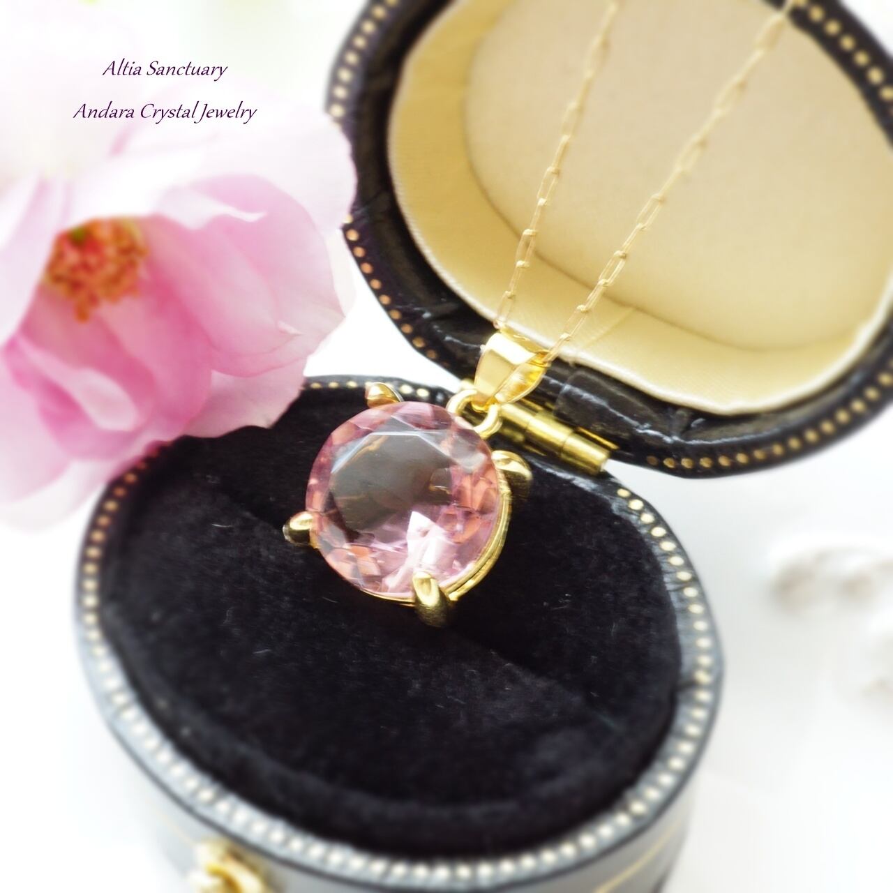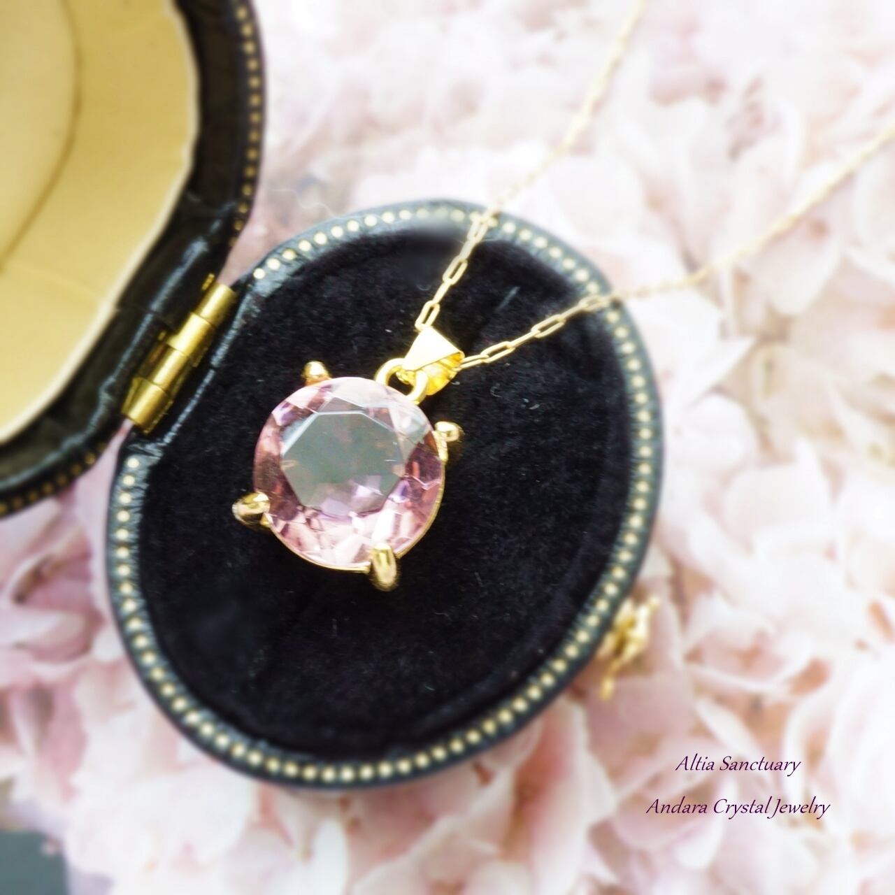 ピンク味のある紫色の妖艶な美しい輝きを放つ高貴な「ソブリンアメジスト」です。濃淡の縞模様(Banded)になっております。10ミリの小さなダイヤモンドカット(ファセットカット)に研磨加工し、Silver925製・18KGP仕上げのペンダント枠にセットいたしました。