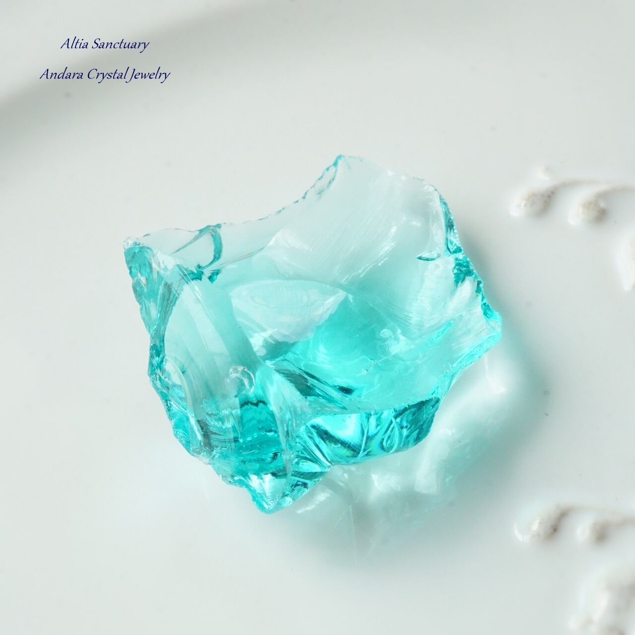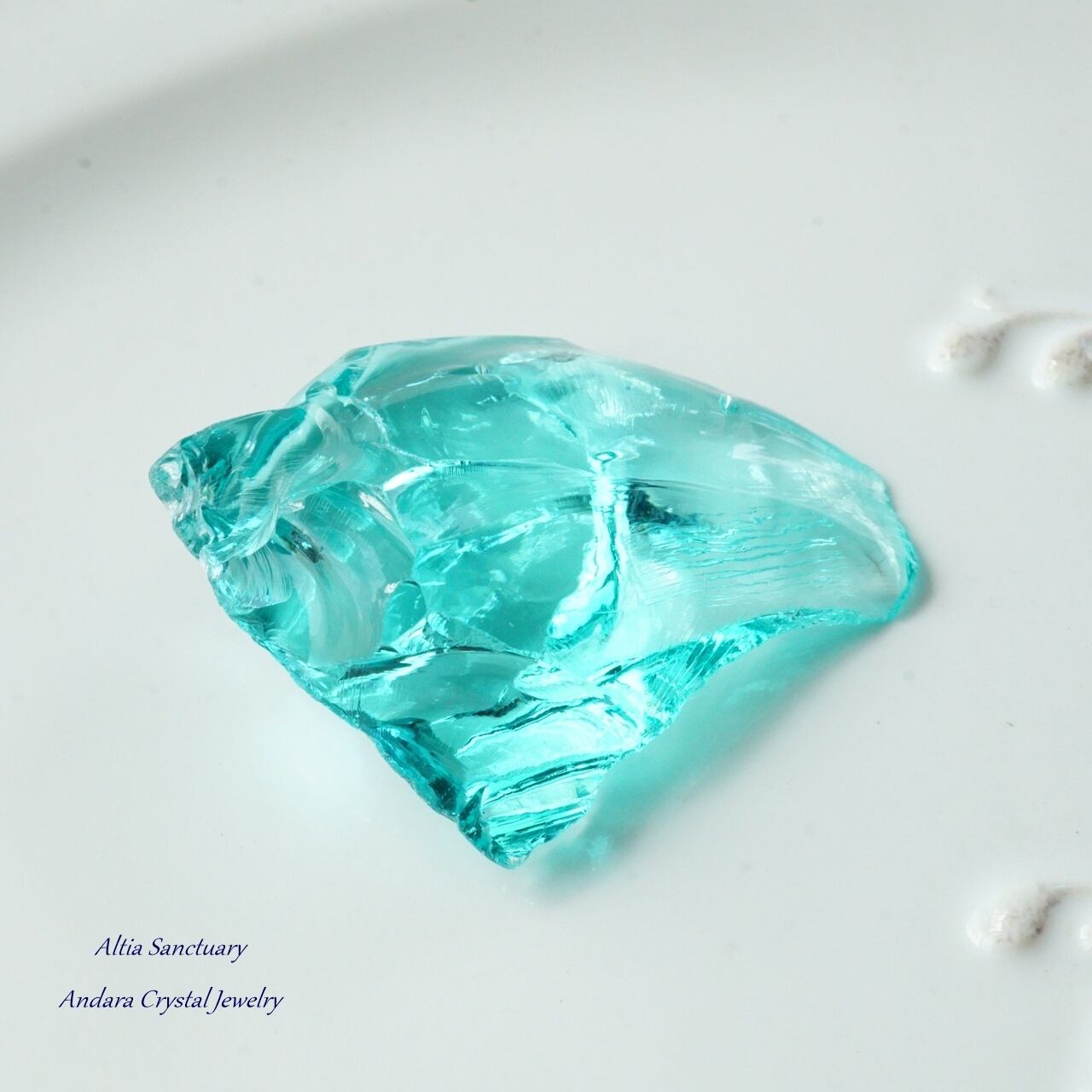 濃い目の色鮮やかな「シアンエンジェル」です。美しいの海のようなブルーグリーンが天界の輝きを放つアンダラクリスタルです。艶・照り・キラメキがございます。約14gの中粒サイズのピースになります。