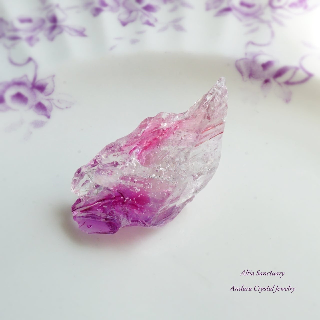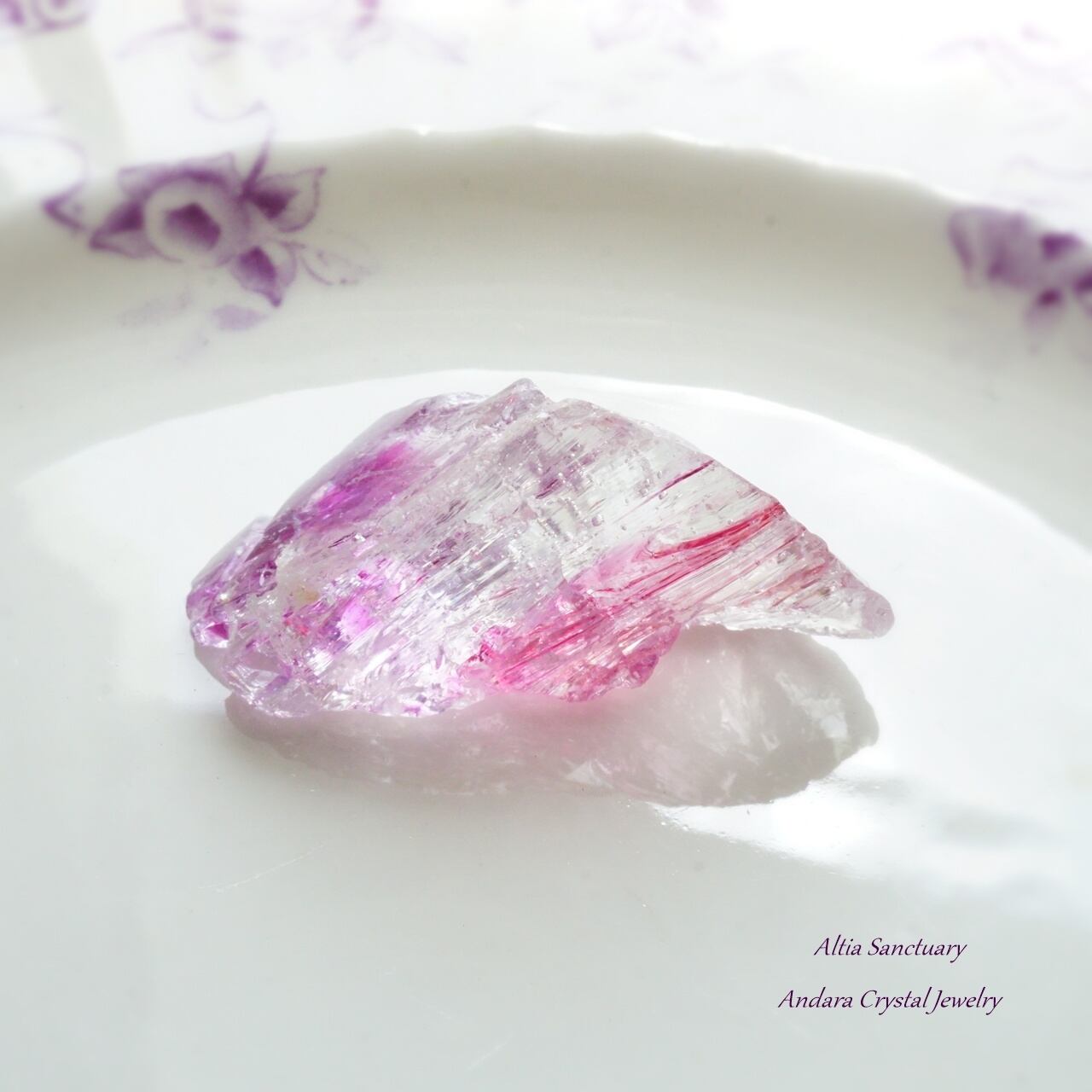 このアンダラは、クリアにヴァイオレットアメジストやピンク、パステルアイスが含まれる希少なアンダラクリスタルです。