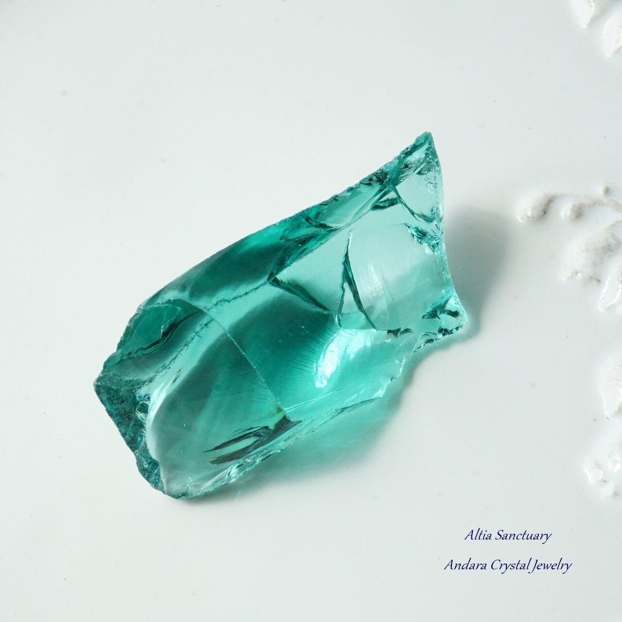 美しいブルーグリーンの宝石「イナンナズウィズダム」です。「愛と美と豊穣の女神イナンナの叡智」のごとく、艶・照りがあり、落ち着いたブルーグリーンが美しいアンダラクリスタルです。