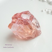 ピンク色「HGWピンク」とサーモンピンク色の「セレスチャルハート」のバイカラーアンダラクリスタルです。インクルージョンに微細な気泡のベールが舞っています。小さな虹も見られます。
