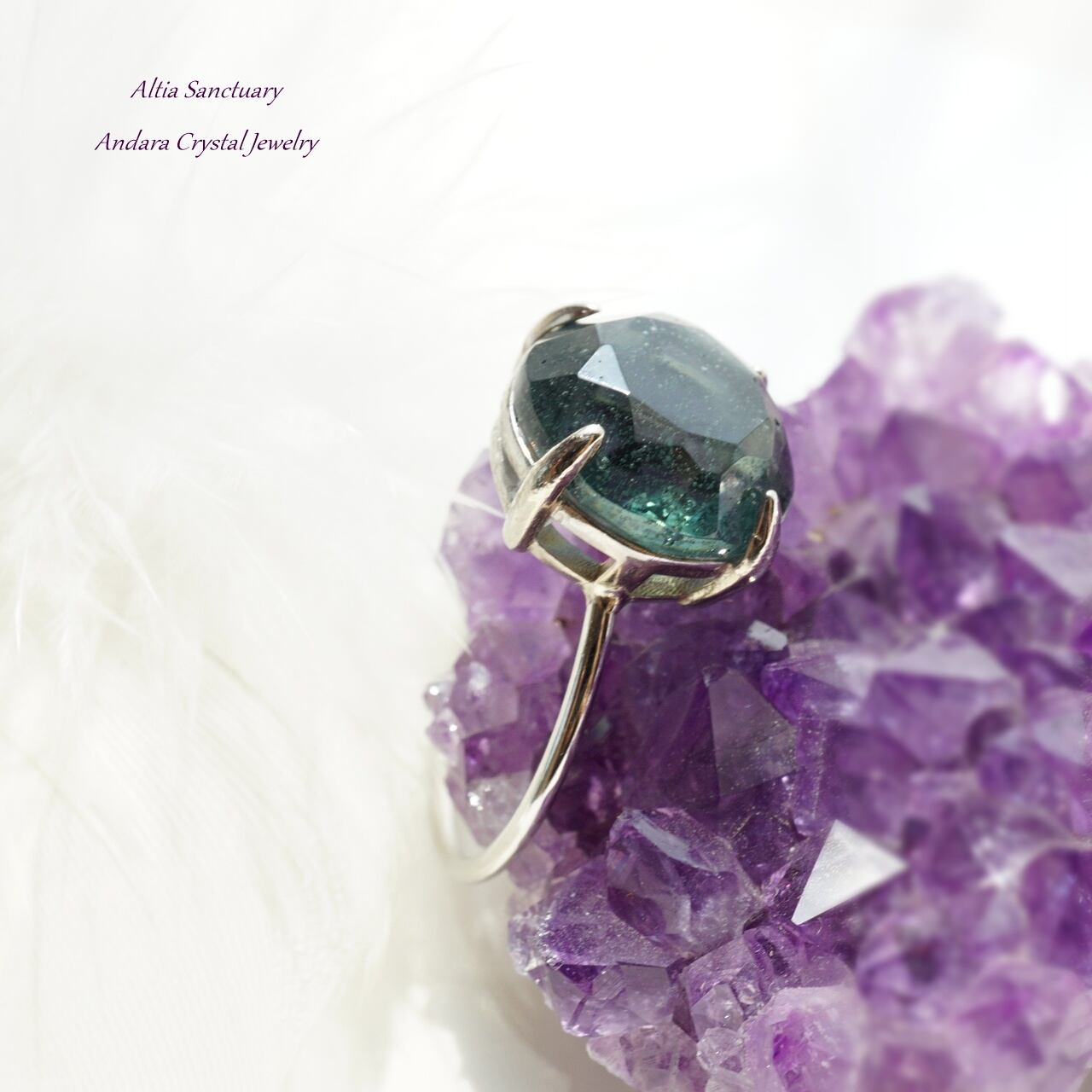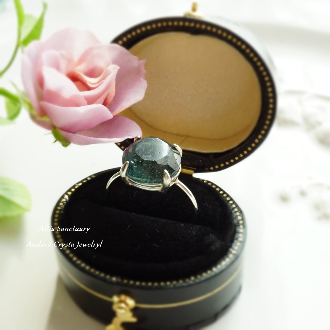【J様オーダー】加工代ーアンダラクリスタル(イスタリ/シーフォーム)ダイヤモンドカット爪留めリング(指輪)Silver925製 ロジウム