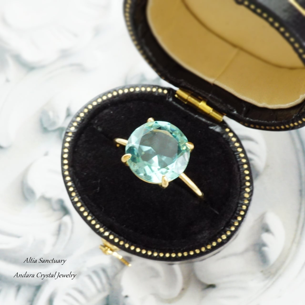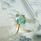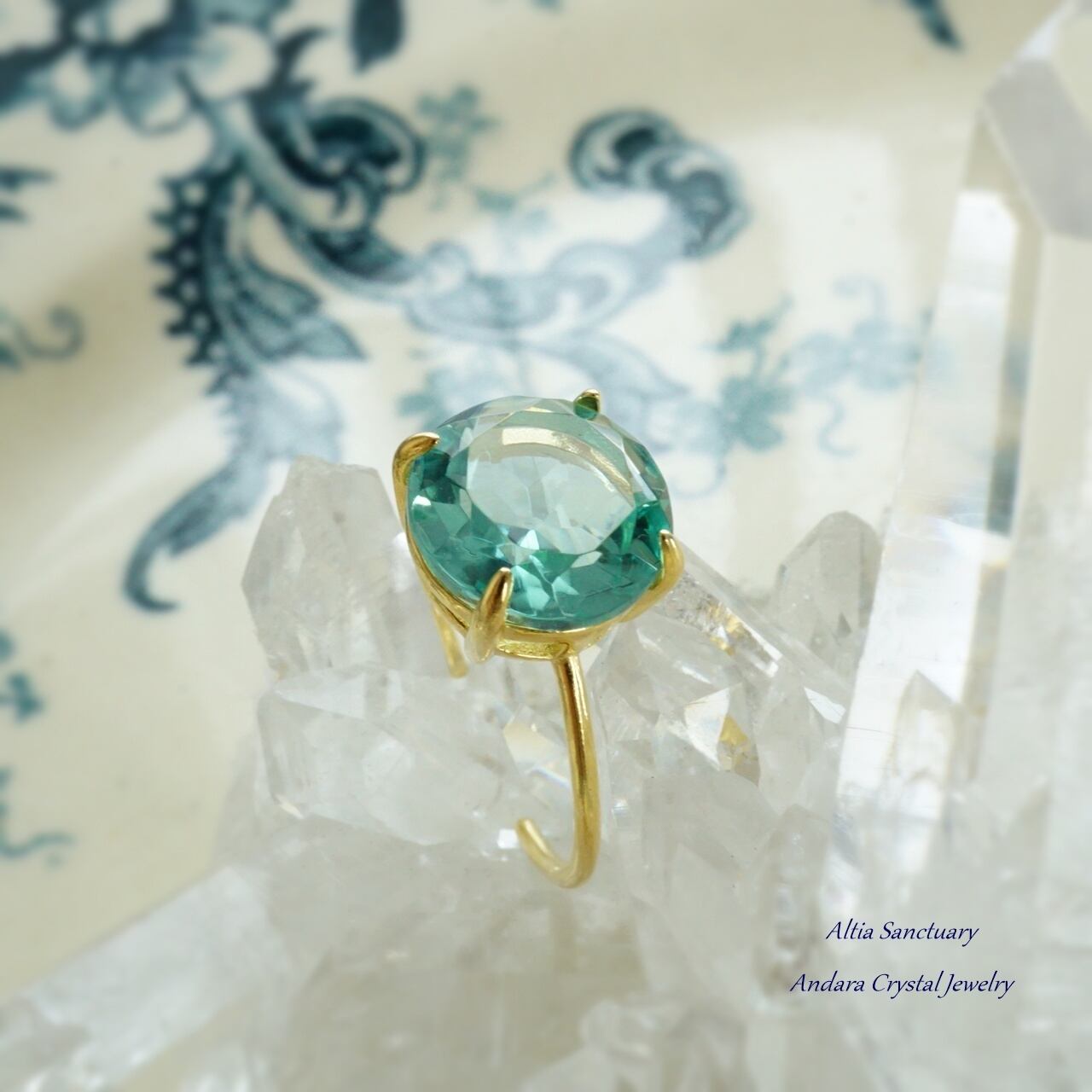美しいブルーグリーン「イナンナズウィズダム」アンダラクリスタルのダイヤモンドカット1粒のシンプルな爪留めリングです。