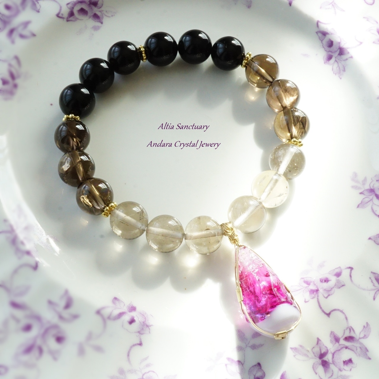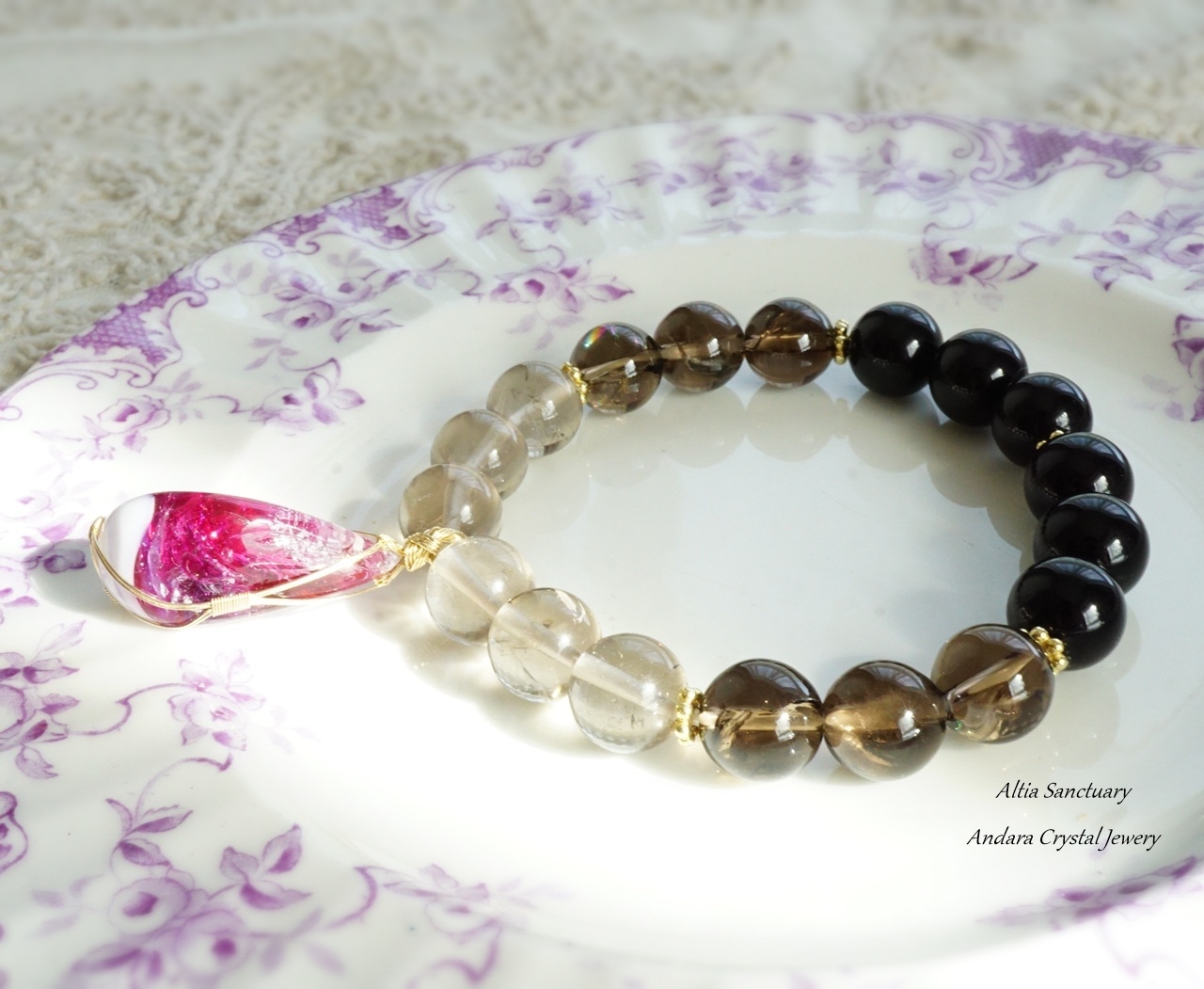 【O様オーダー】天然石(モリオン/スモーキークォーツ)&マルチレインボーアンダラクリスタルブレスレット