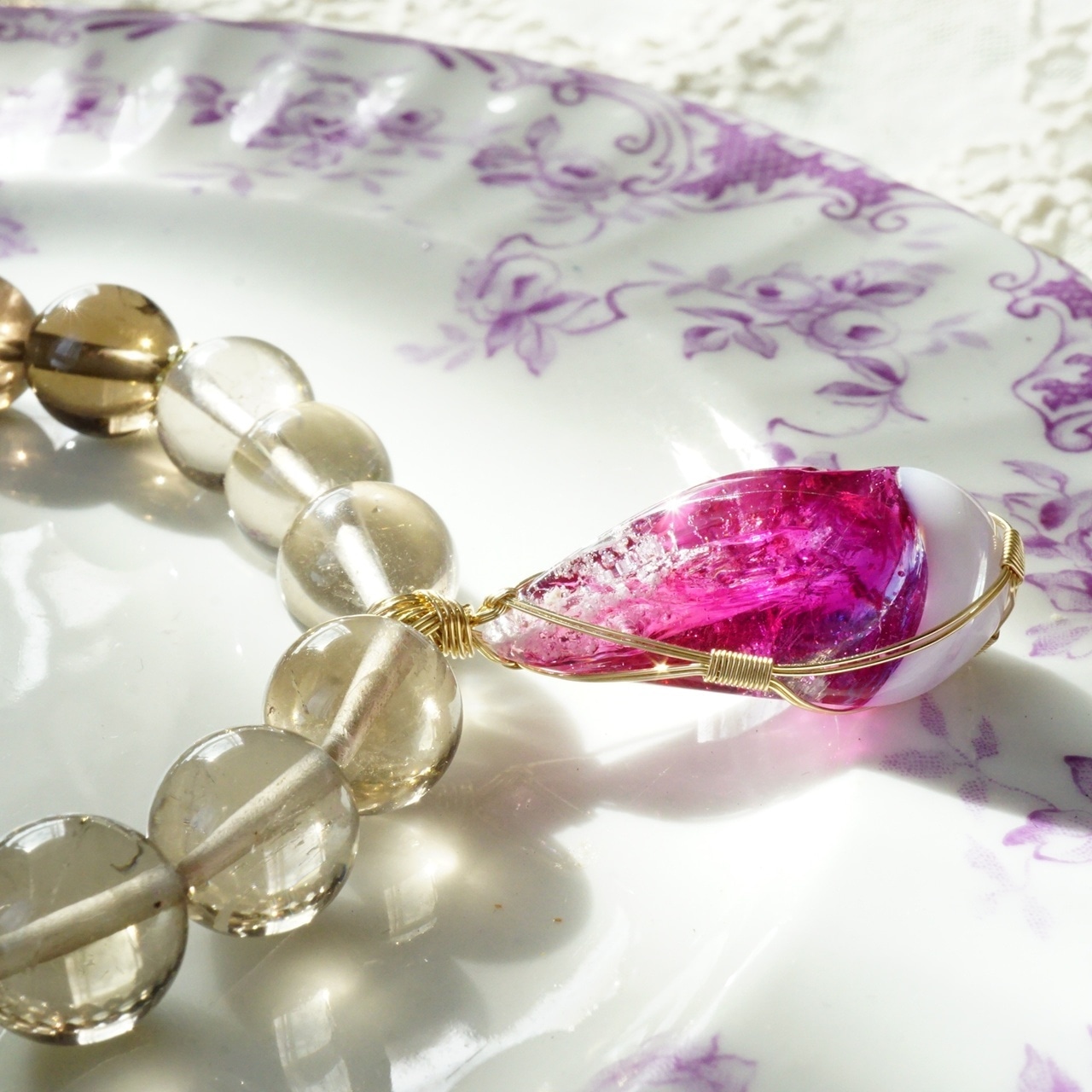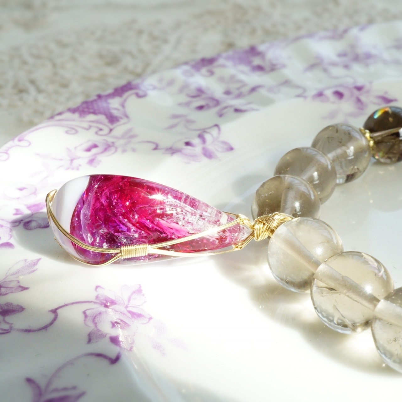 天然石のスモーキーアイリスクォーツも虹入りとなっています。