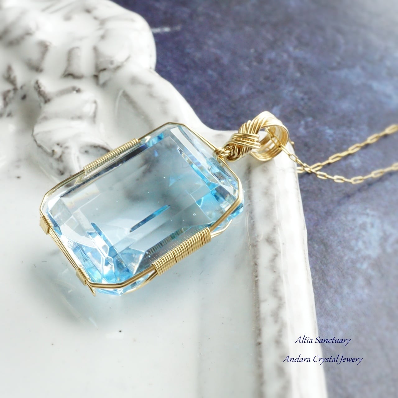 【I様オーダー】加工代ーアンダラクリスタル(ブルー)エメラルドカット女神巻き®ペンダント×11個