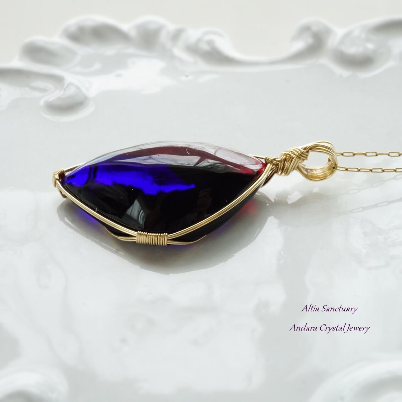 【W様オーダー】ラフ研磨&女神巻き®加工代ーレア!バイカラーアンダラクリスタル(タンザナイトファイヤー/スカーレットシフト)女神巻き®ペンダントトップ-1085