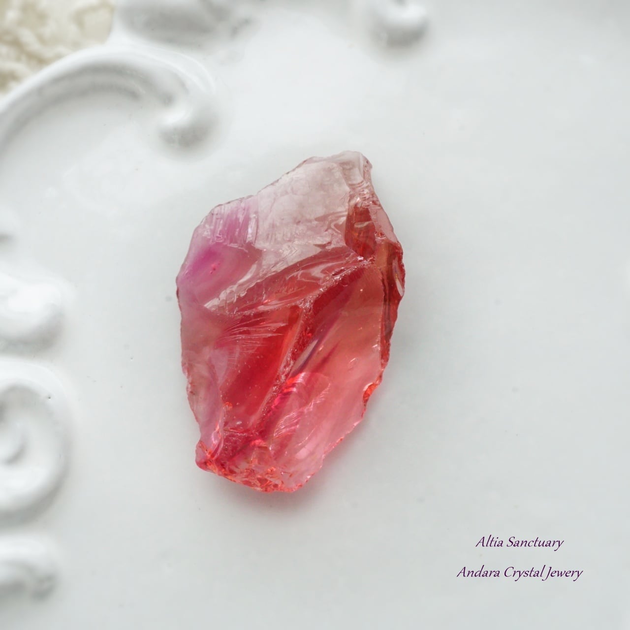ピンクがかったアメジストにゴールドのハイライトが入ったソフィア・アンダラは、源の本質と精神を表現しています。この普遍的な精神と原理は、強力な個人的な次元、つまりインスピレーションの次元でもあります。