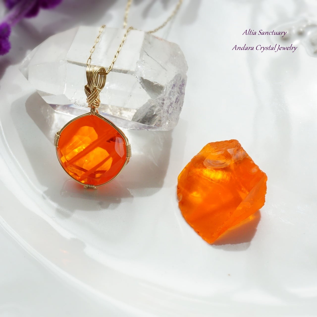 明るい半透明のオレンジ色のファイアーオパールは、自分の努力に自信、明晰さ、確信を与えます。ビジネスでも個人的な悟りでも、ファイヤーオパールはあなたの存在、心、体にエネルギーを与え、あなたの個人的な力を高めます。