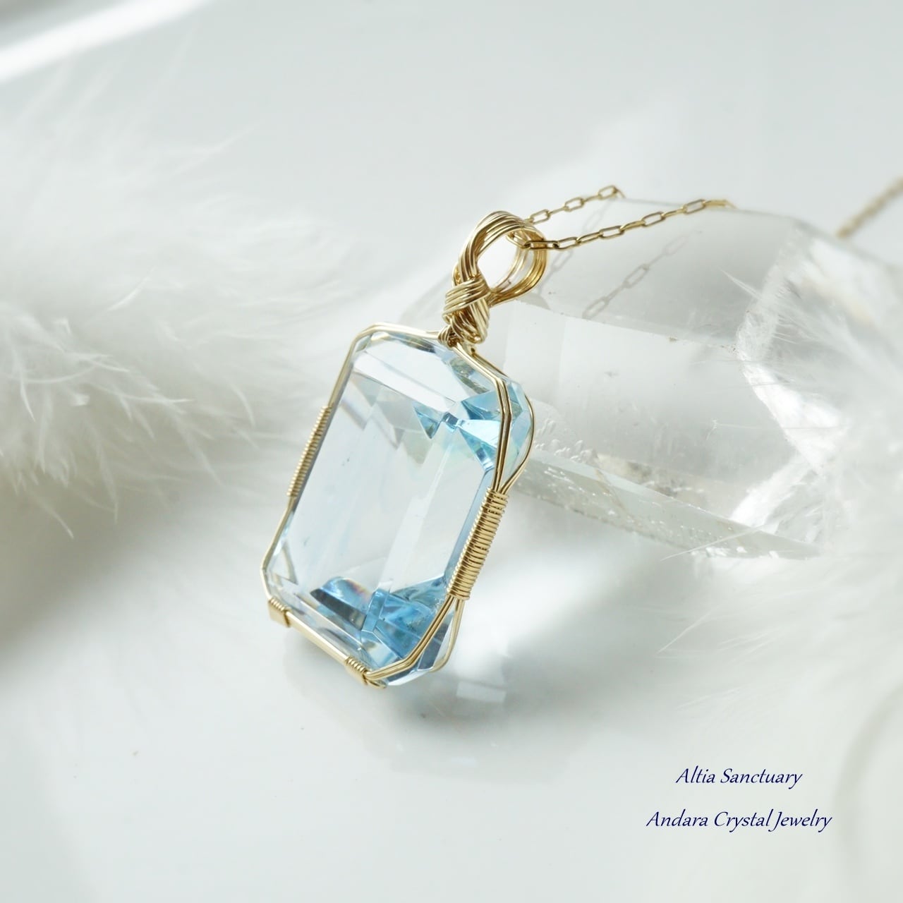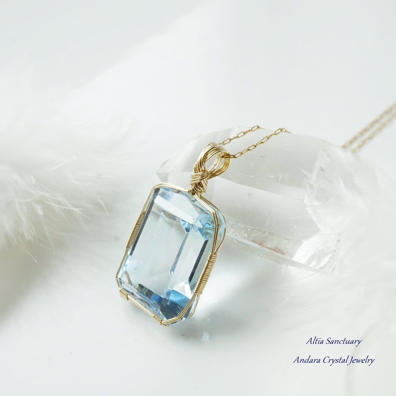 【I様オーダー】加工代ーアンダラクリスタル(ブルー)エメラルドカット女神巻き®ペンダントトップ