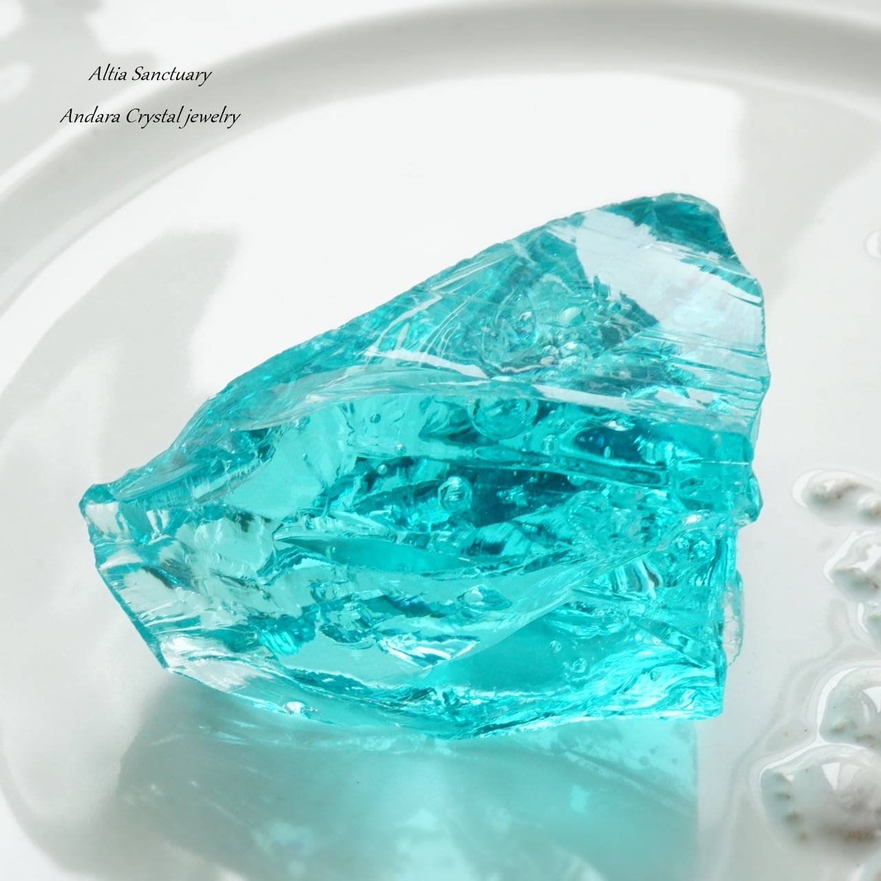 愛と美と豊穣の女神イナンナの特性を持つ明るいブルーグリーン「イナンナズウィズダム」です。大小の気泡を内包している美しいアンダラクリスタルです。