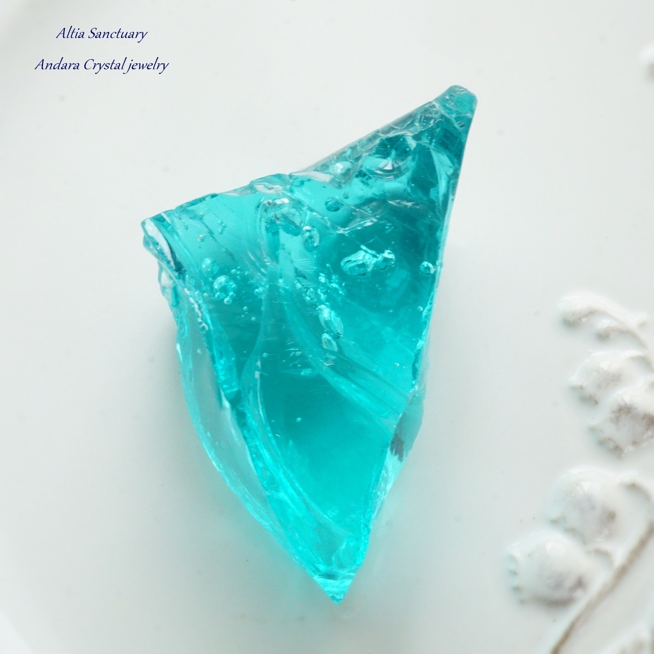 愛と美と豊穣の女神イナンナの特性を持つ明るいブルーグリーン「イナンナズウィズダム」です。大小の気泡を内包している美しいアンダラクリスタルです。
