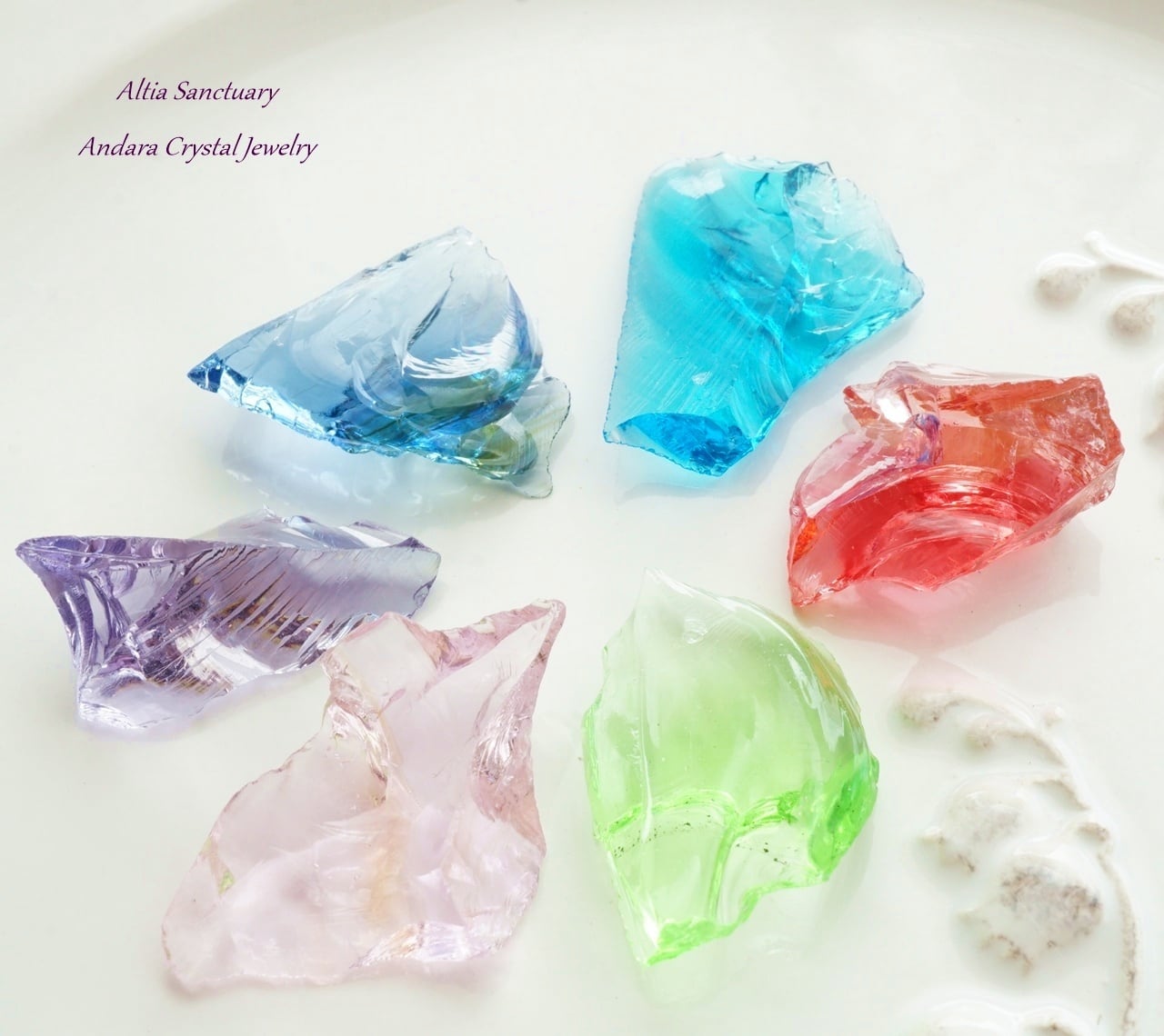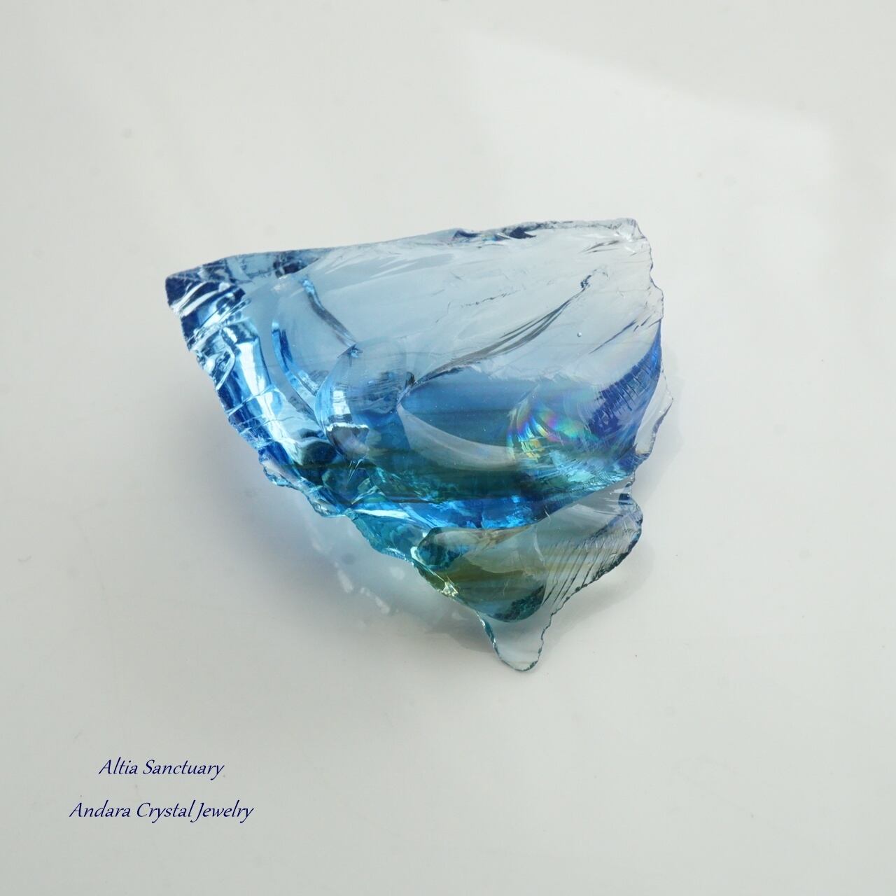 アンダラクリスタルは、黒曜石(オブシディアン)に似たガラス質で、ゴールド・シルバー・イリジウム・ロジウム・クロミニウム・プラチナなどの単原子成分が含まれており、レインボーの7色以上の美しいカラーを放つ魅力を持っています。