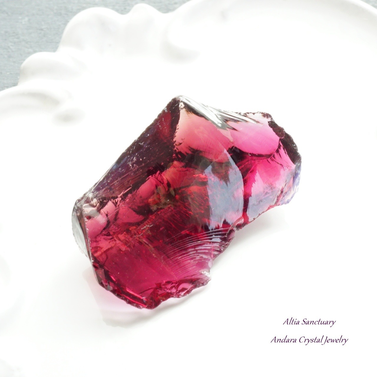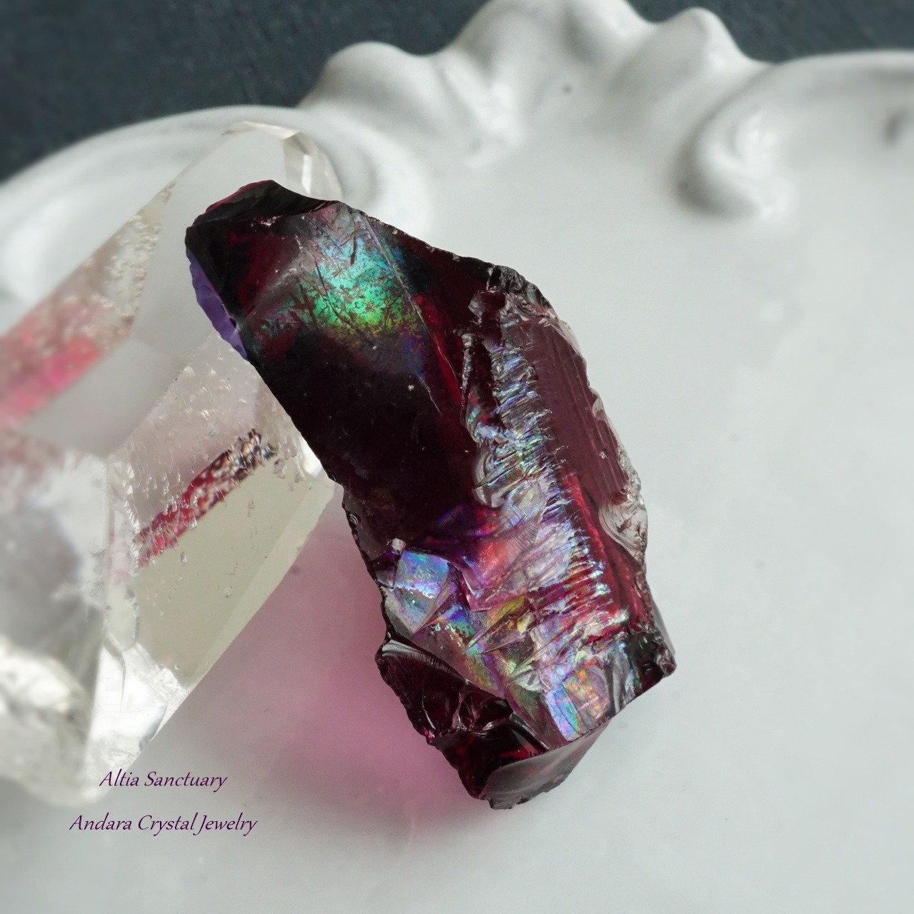 「ラズベリーレゾナンス」に僅かな「パステルピンク」が入ったアンダラクリスタルです。裏面には、銀化した虹色が見られます。8.1gの小さめピースになります。
