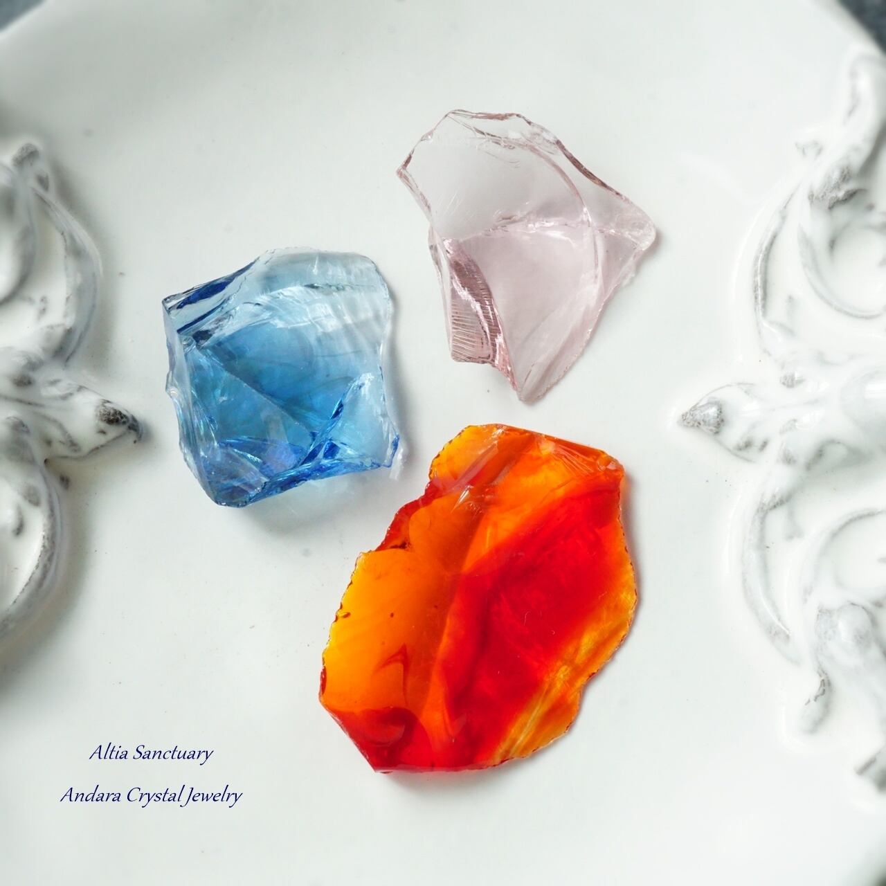 レア!アンダラクリスタル3ピースセット(①マルチレインボー ファイヤーオパール/レムリアンサンライズ ②サファイア/アースシャーマン ③ライオンズハート)13g-PendantSize