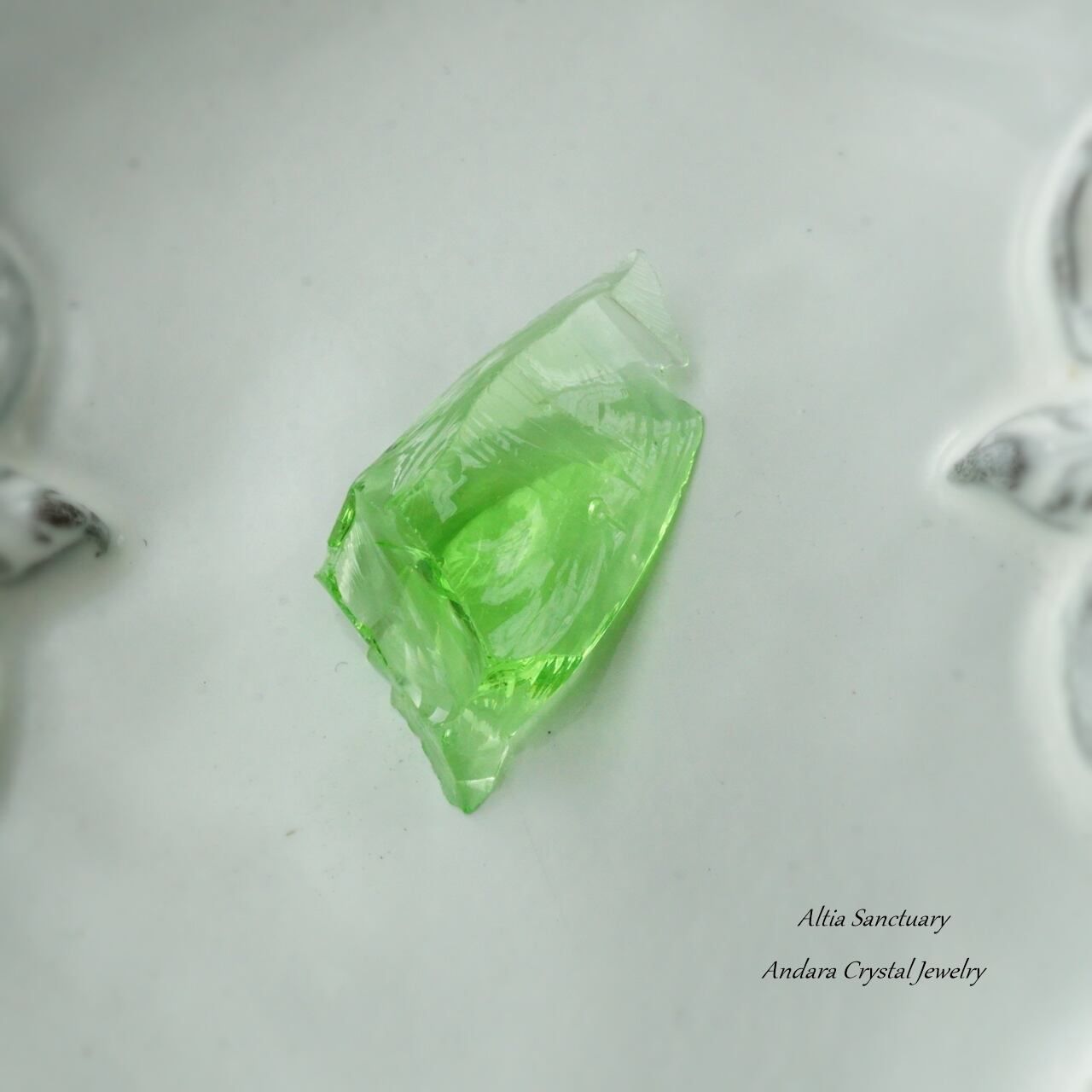 アンダラクリスタルは、黒曜石(オブシディアン)に似たガラス質で、ゴールド・シルバー・イリジウム・ロジウム・クロミニウム・プラチナなどの単原子成分が含まれており、レインボーの7色以上の美しいカラーを放つ魅力を持っています。