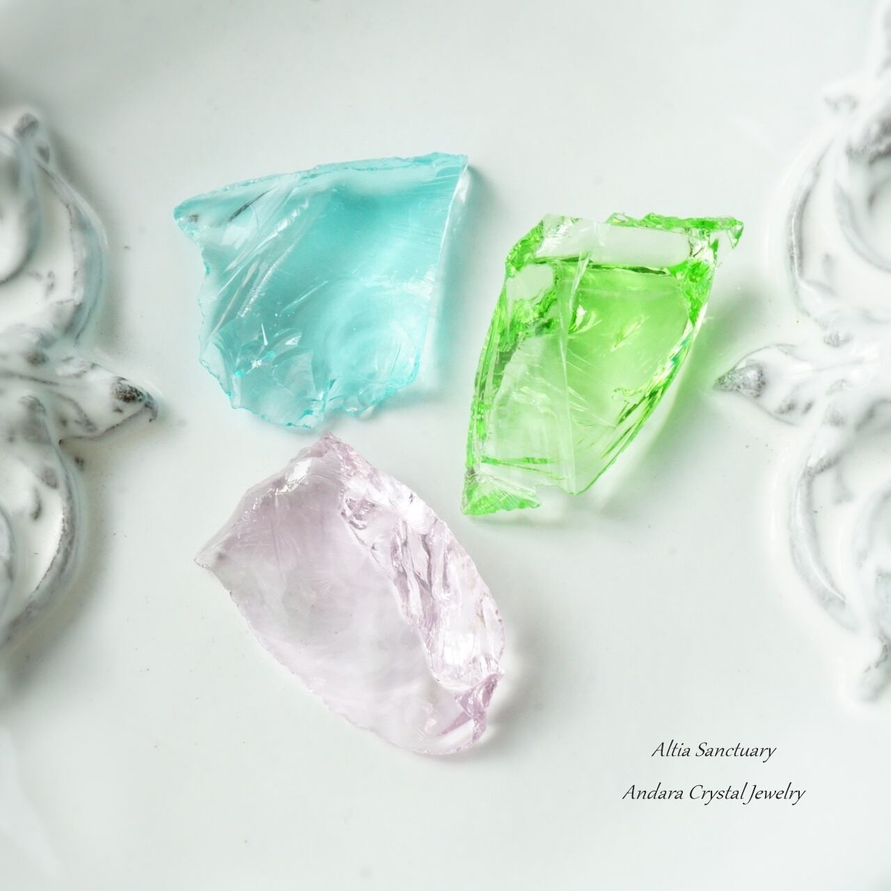ペンダントサイズの明るいペールカラーのアンダラクリスタル3ピースセットです。