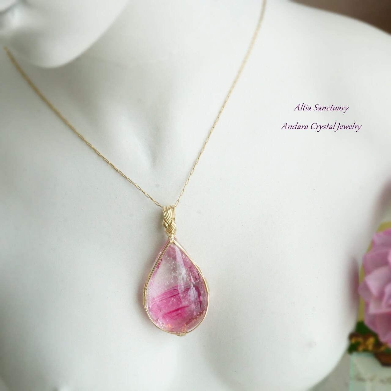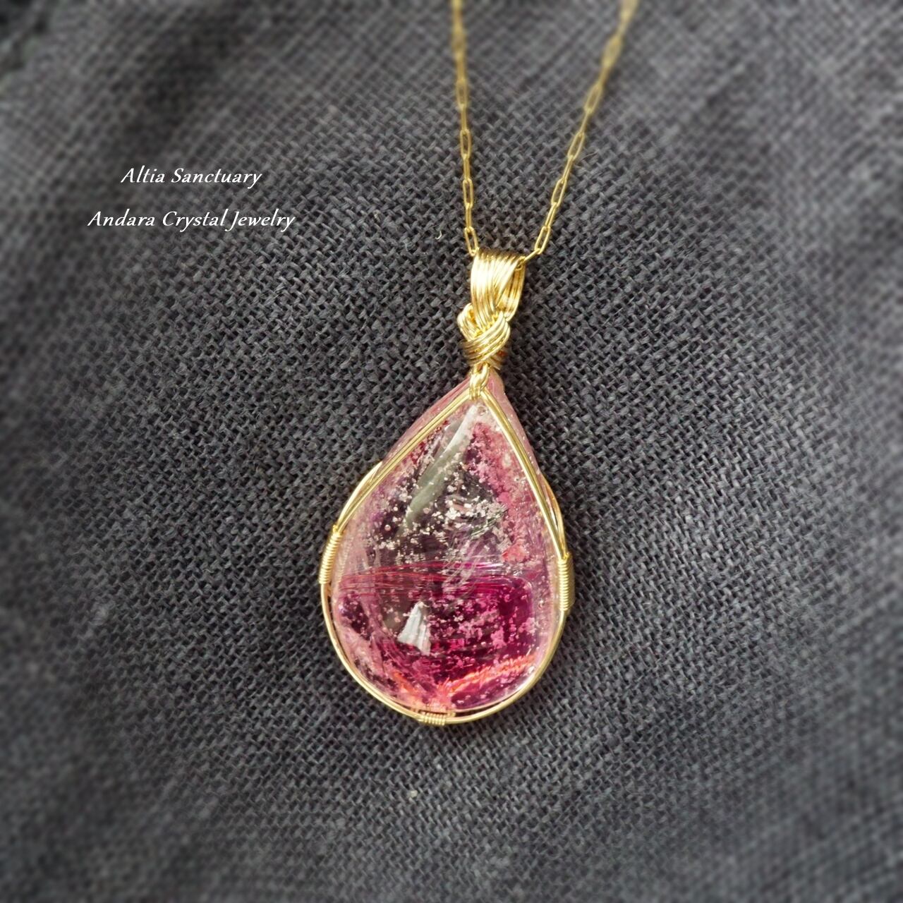 超レア!マルチレインボーアンダラクリスタル(シーフォーム/ソフィア/ラズベリー/アメジスト/コスミックアイス)しずく女神巻き®ペンダントトップ-1101