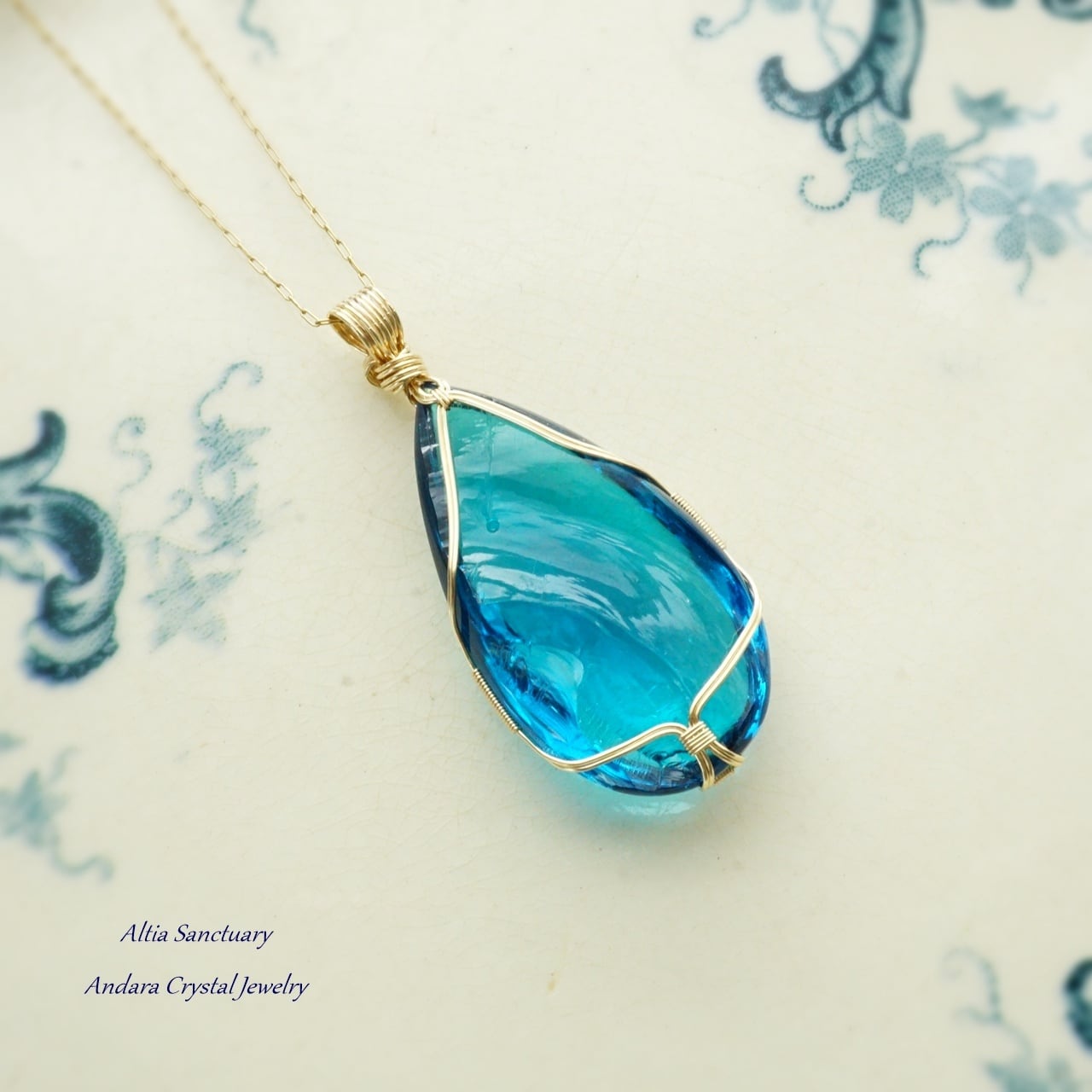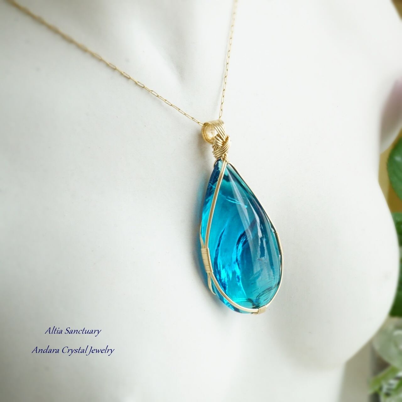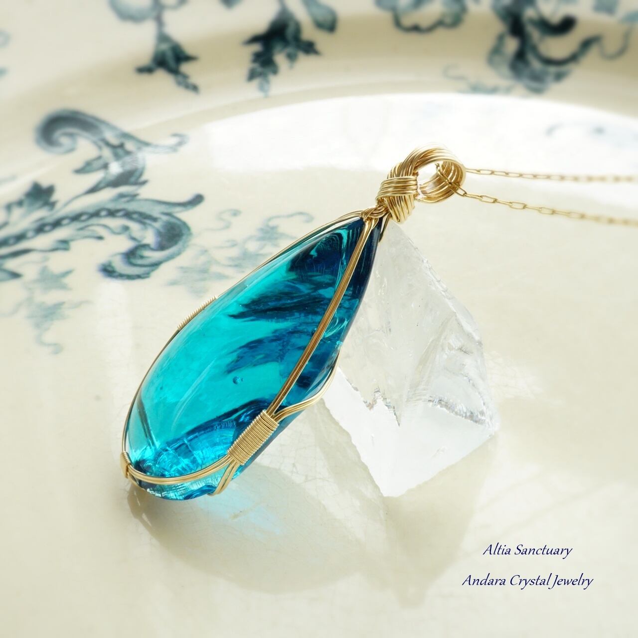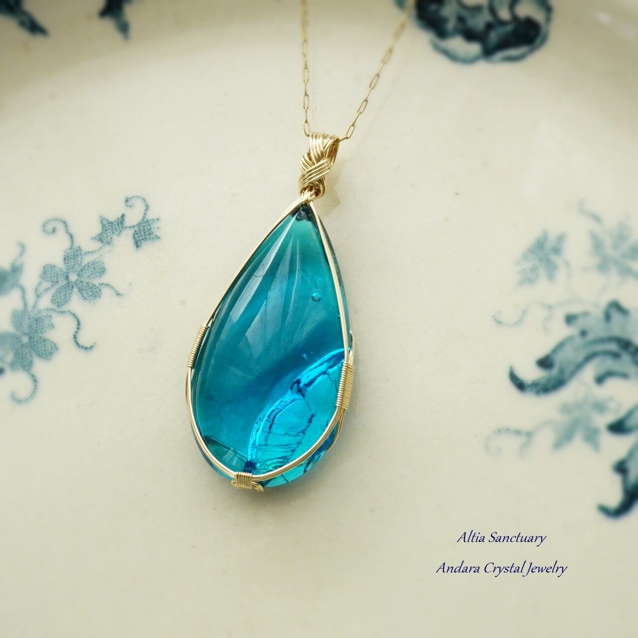 レア!アンダラクリスタル(スターライト エレスチャルサフャイア )しずく 女神巻き®ペンダントトップ-1012