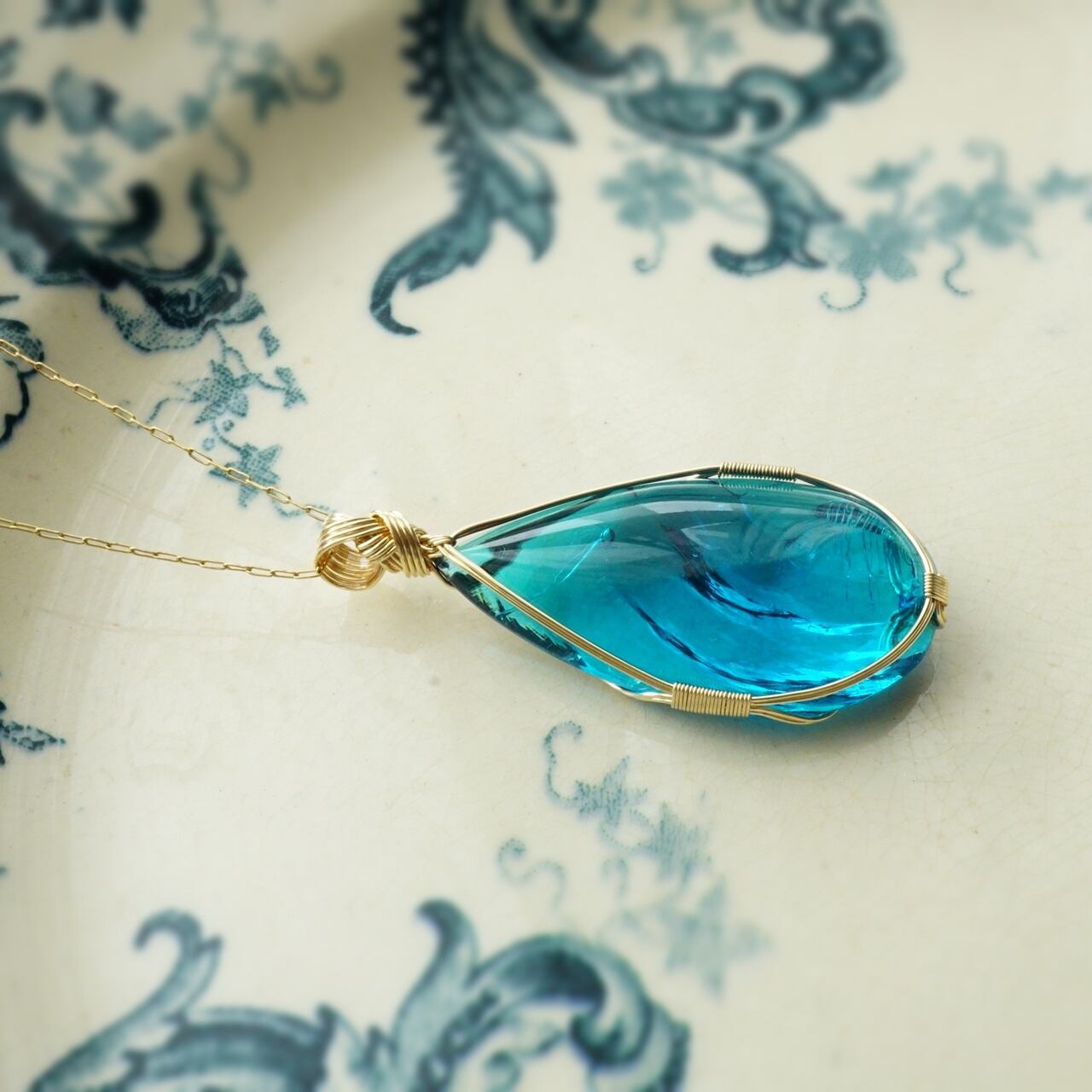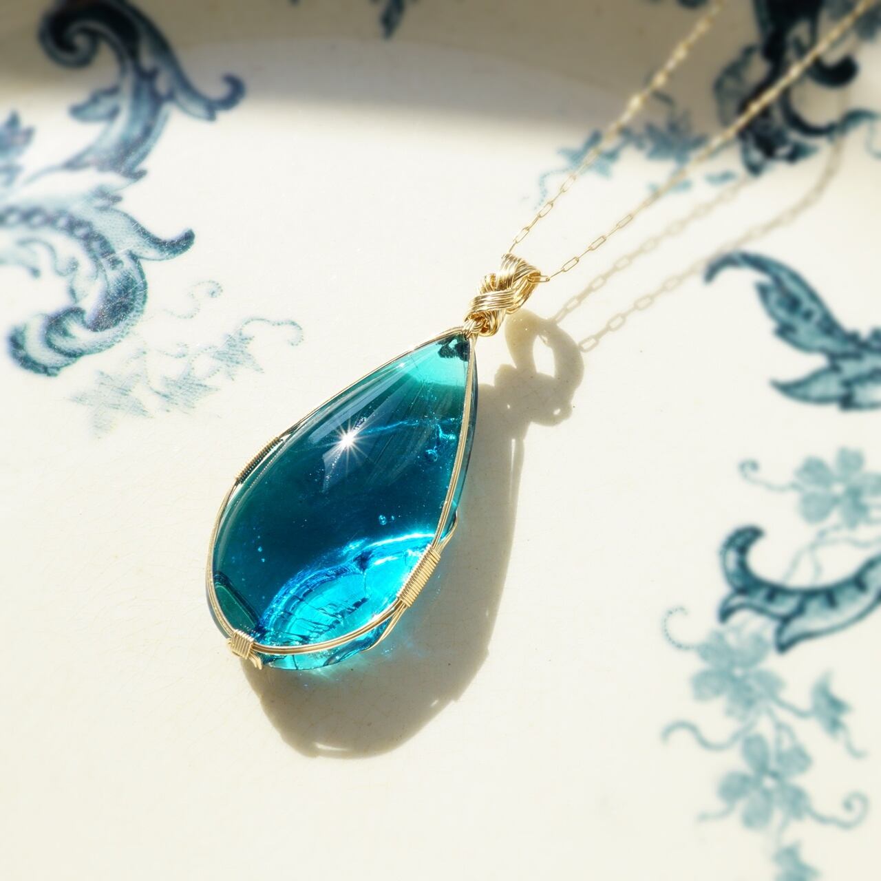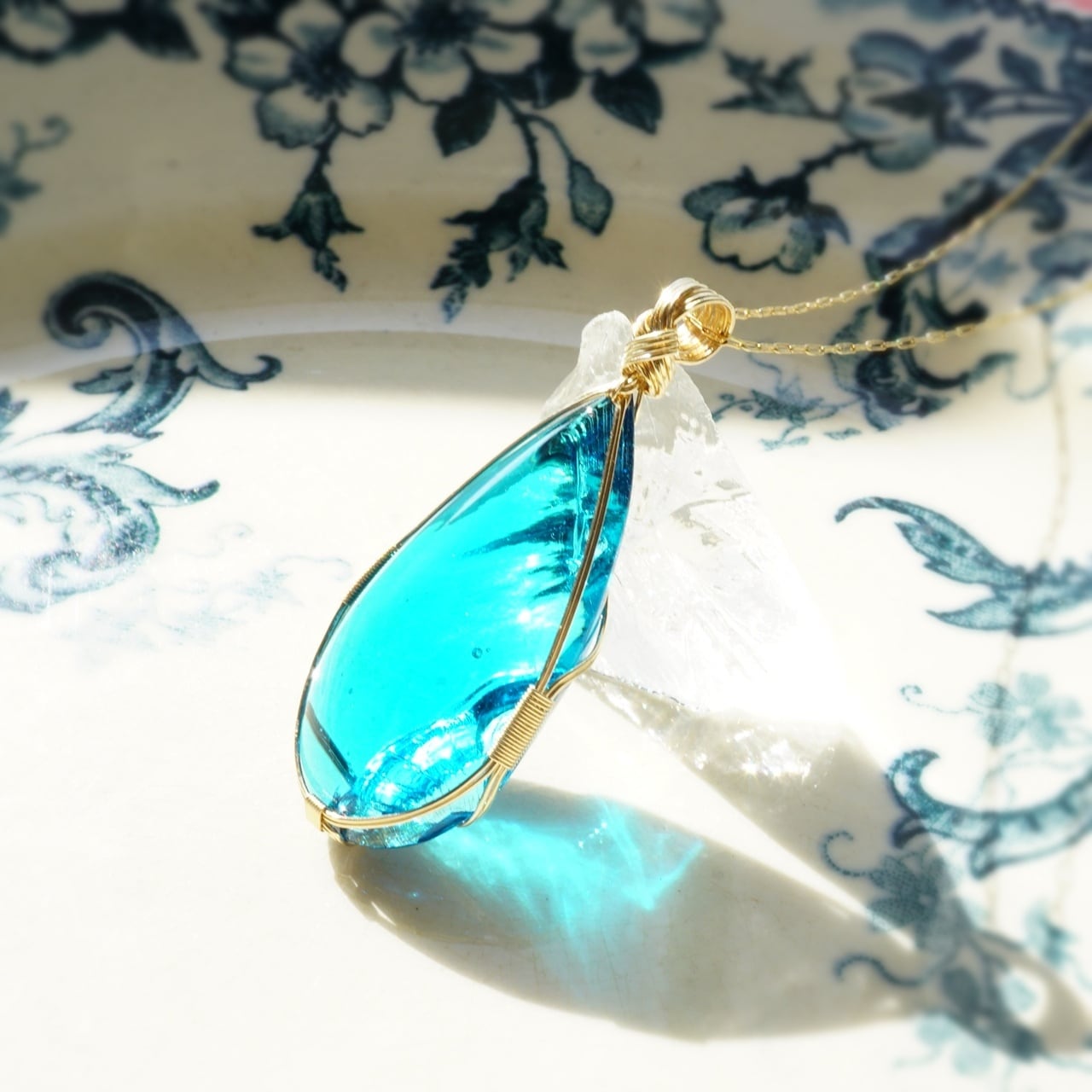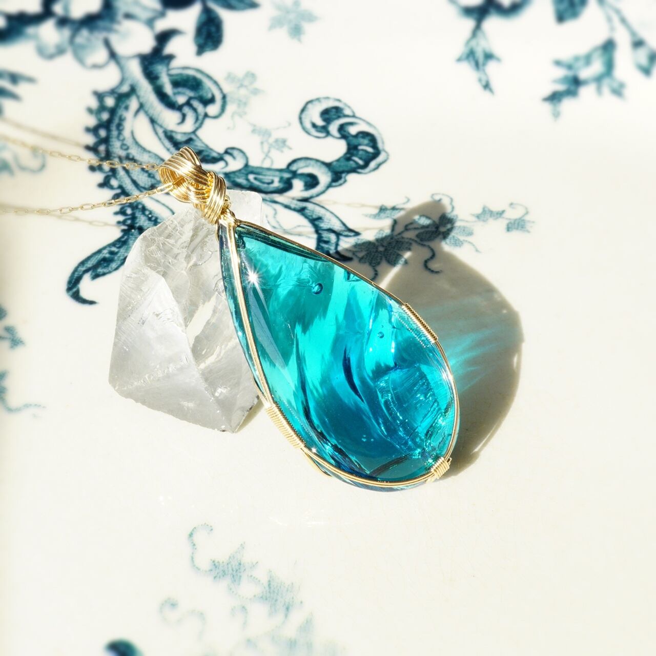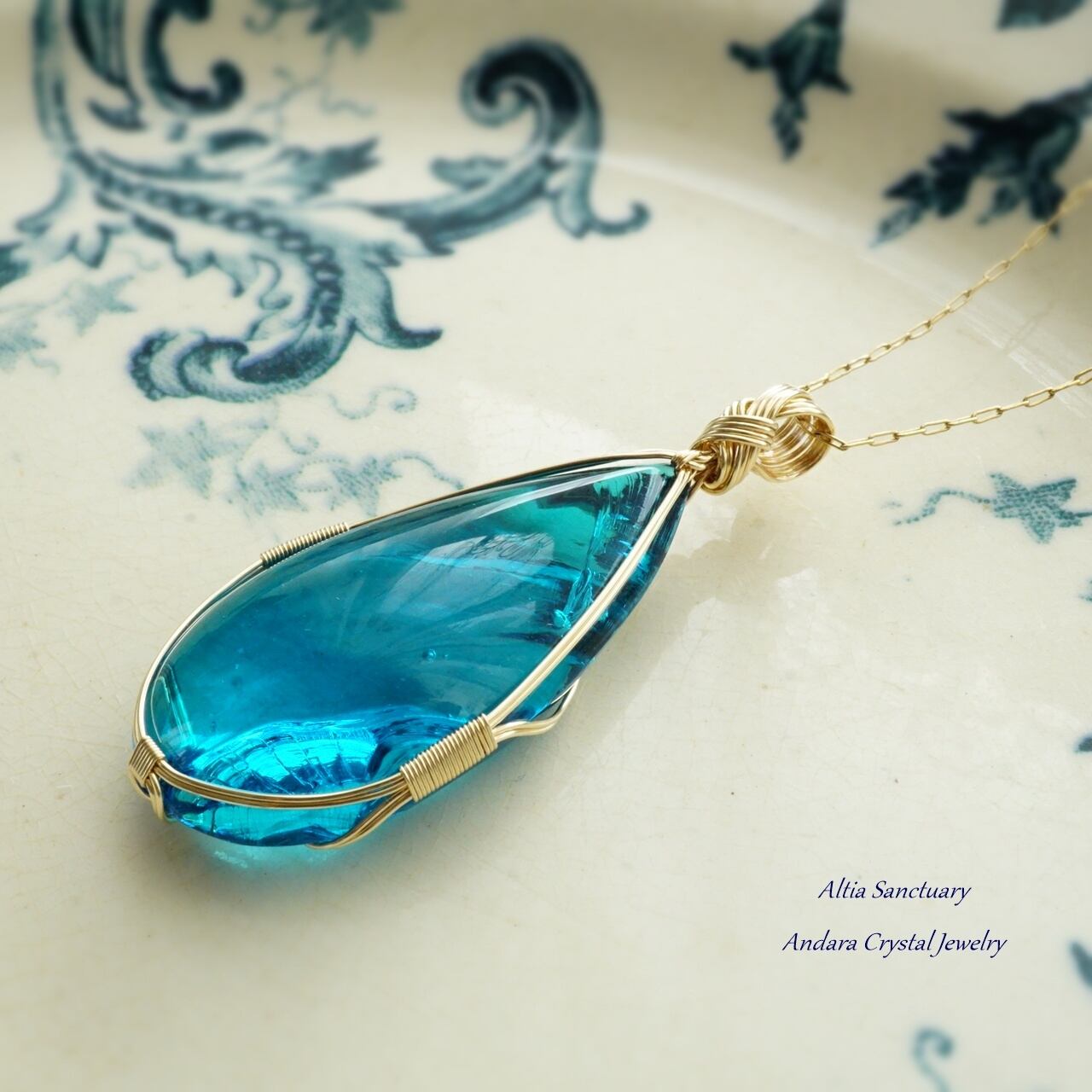 深く広い海を思わせるブルーの色合いが魅力的なアンダラクリスタルです。裏面は波紋模様をそのまま残しましたので、ブルーの波紋の広がりが美しいペンダントです。