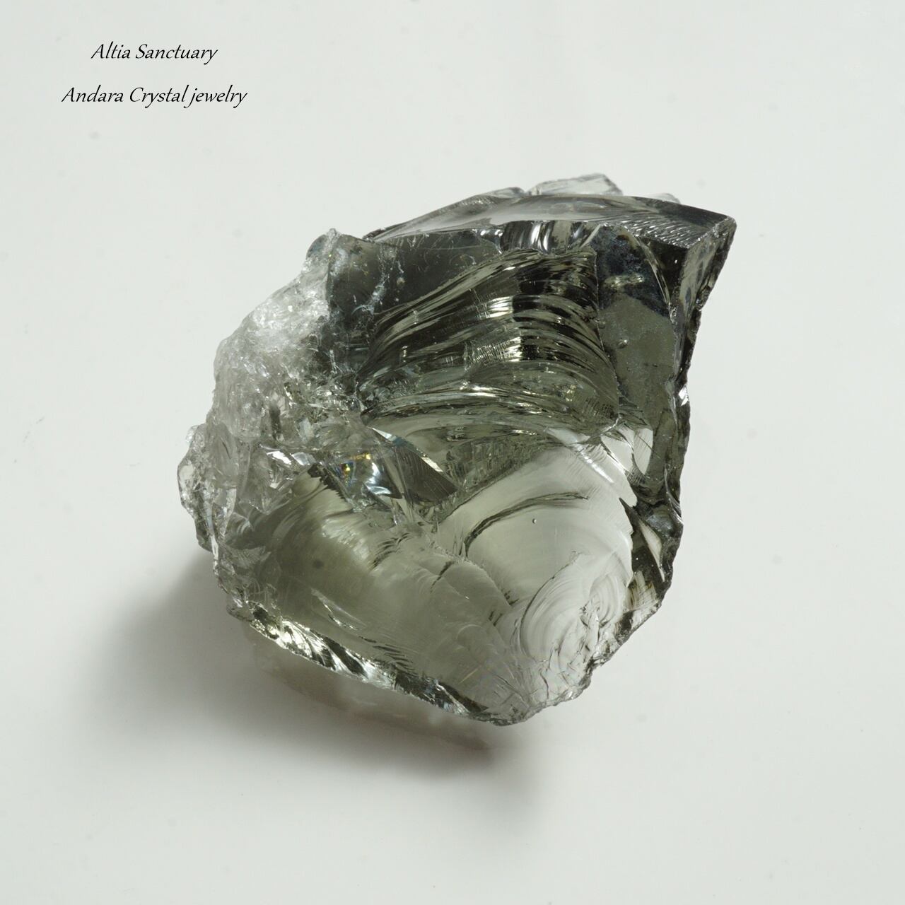 アンダラクリスタルは、黒曜石(オブシディアン)に似たガラス質で、ゴールド・シルバー・イリジウム・ロジウム・クロミニウム・プラチナなどの単原子成分が含まれており、レインボーの7色以上の美しいカラーを放つ魅力を持っています。
