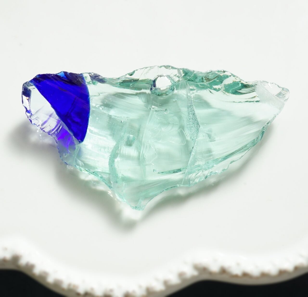 明るいミントカラー「エーテルミント」に「タンザナイトファイヤー」が内包されている珍しいアンダラクリスタルです。微細な気泡の層が、所々にヴェールとなって内包しています。弧を描く波紋が広がり、イルカのような形もユニークです。オープンバブルもございます。