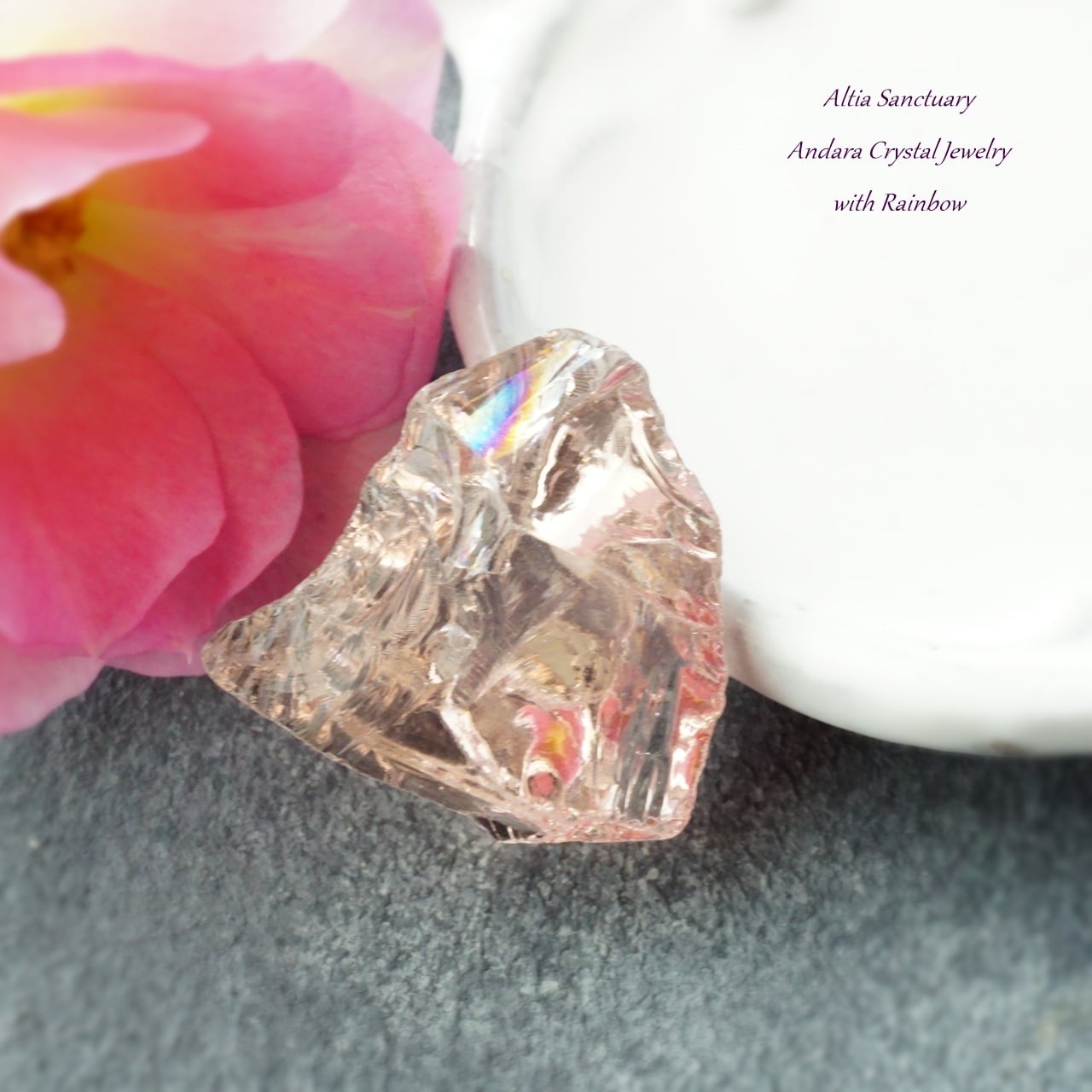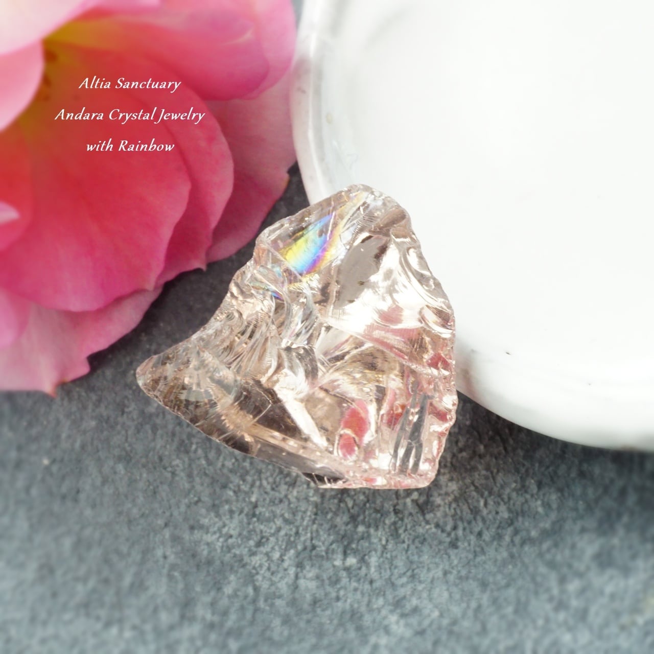 アンダラクリスタルは、黒曜石(オブシディアン)に似たガラス質で、ゴールド・シルバー・イリジウム・ロジウム・クロミニウム・プラチナなどの単原子成分が含まれており、レインボーの7色以上の美しいカラーを放つ魅力を持っています。