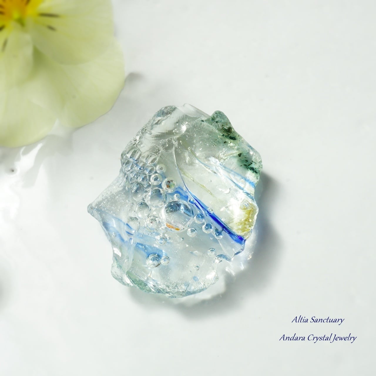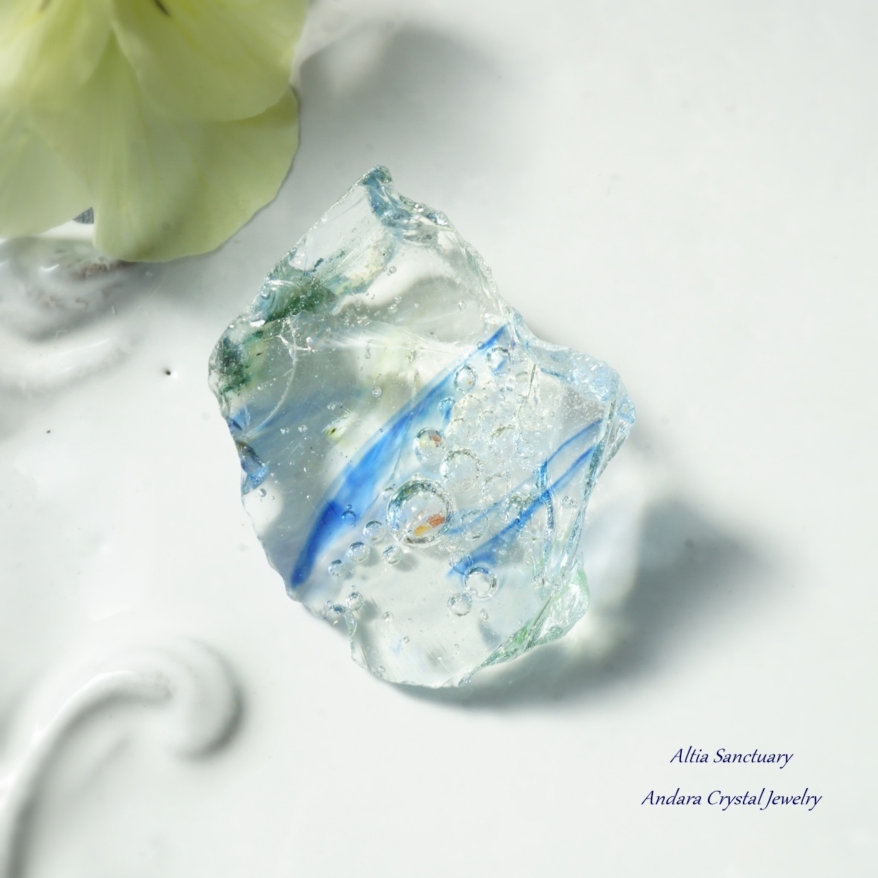 こちらのマルチカラーは、「コスミックアイス」に「エレスチャルサファイア」と「エメラルドシフト」「インディゴ」等が組み合わさったアンダラクリスタルです。海の泡-シーフォーム入りです。
