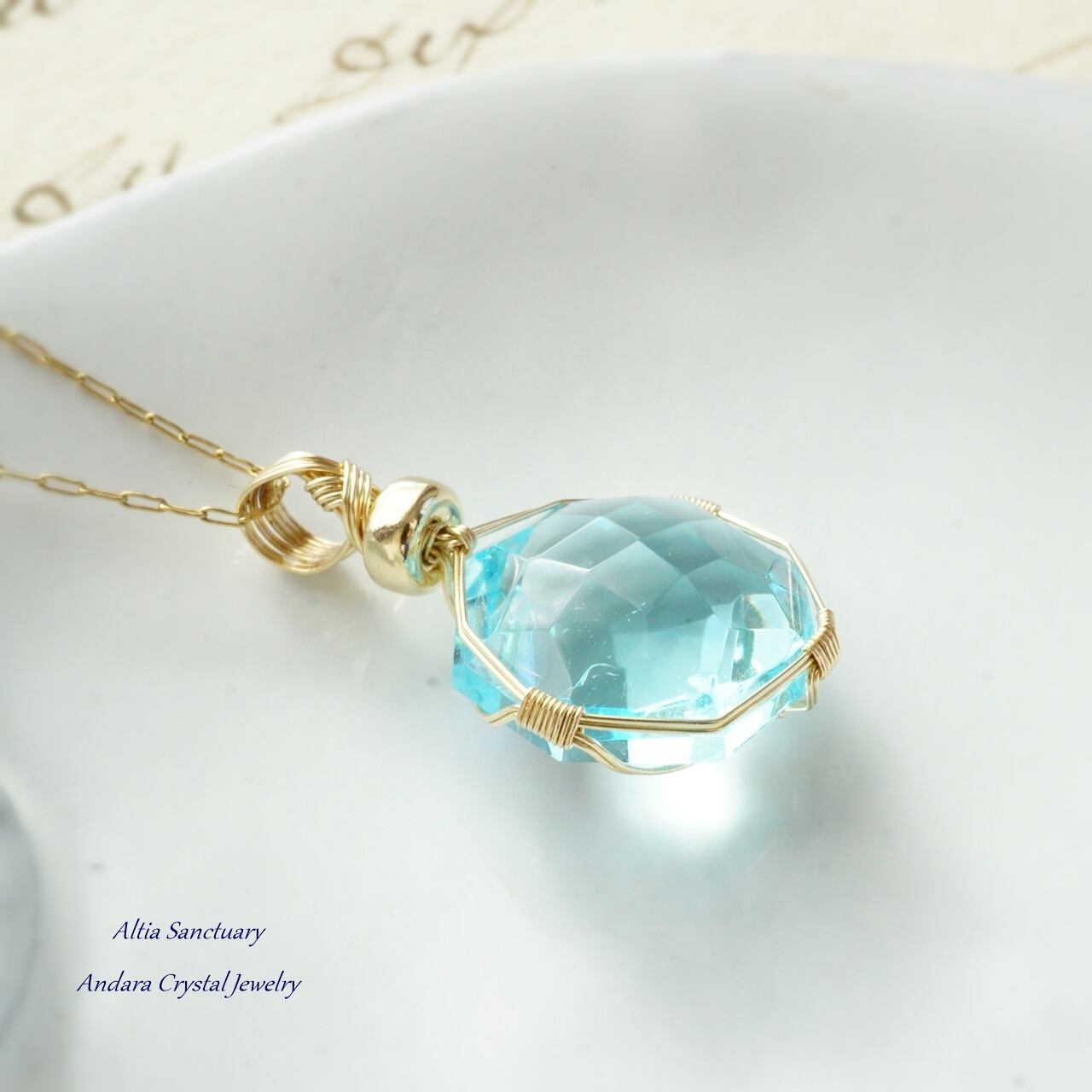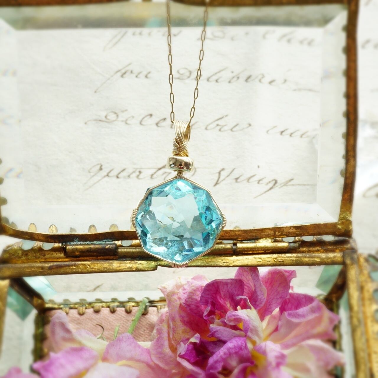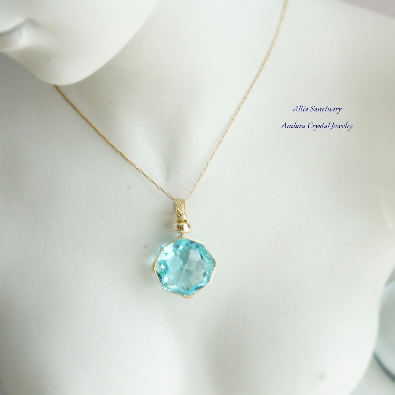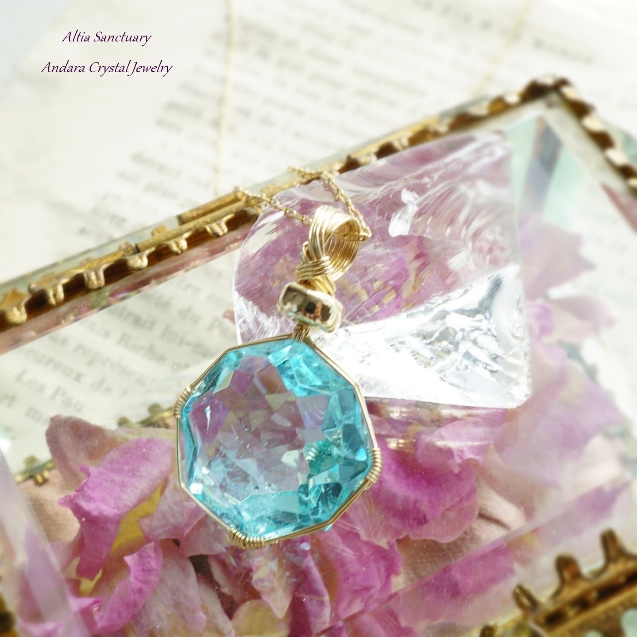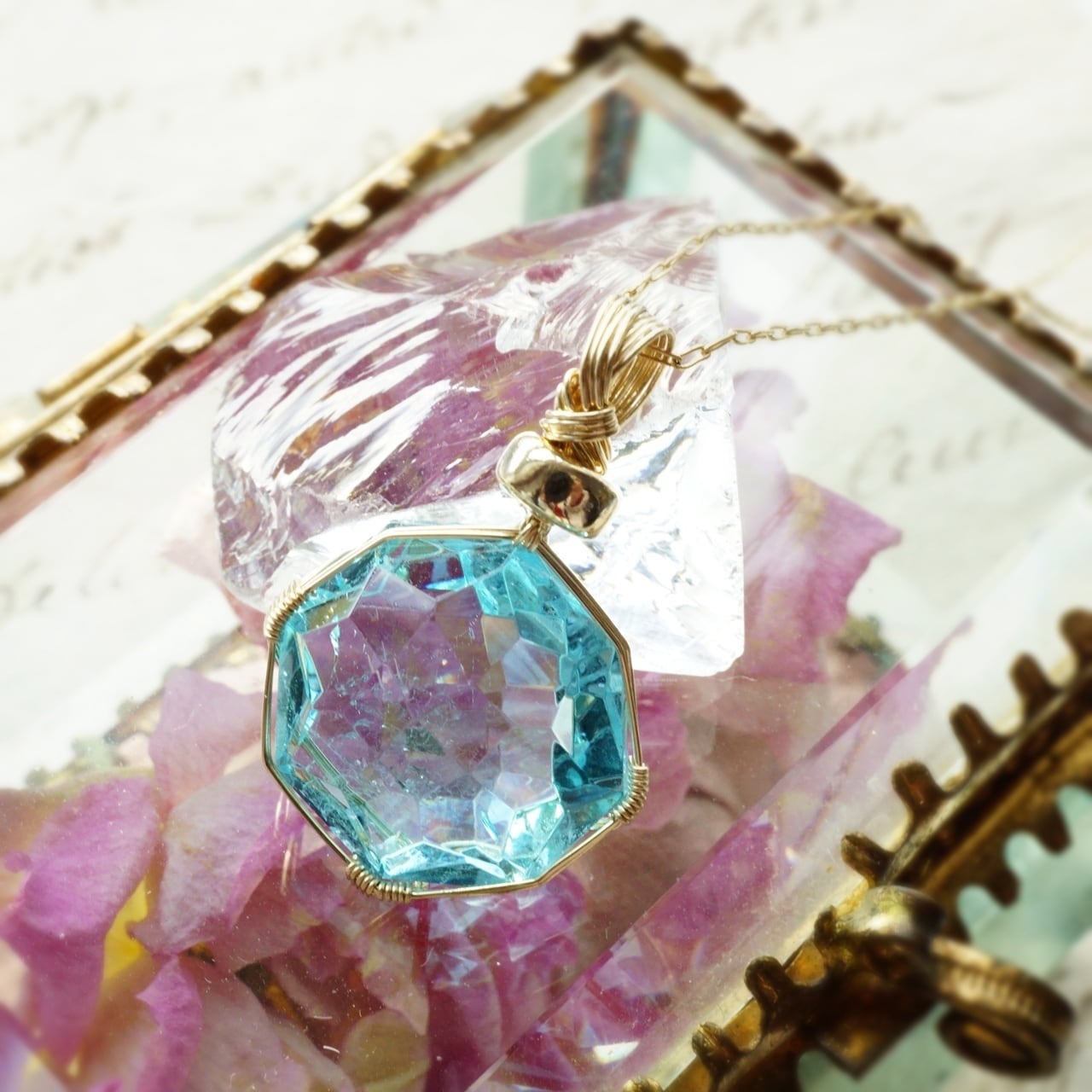 【Ⅰ様オーダー】レア!アンダラクリスタル(ブルートパーズ)八角形~サンフラワーカット~ロンデル付き女神巻き®ペンダント