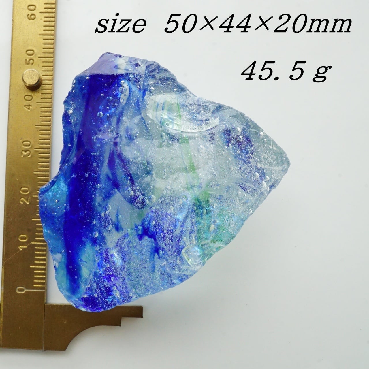 こちらの原石は4色以上が一つのピースに組み合わさった希少なアンダラクリスタル「マルチレインボー」です。タンザナイトファイヤーやサファイヤのブルー系やコスミックアイス、エメラルドグリーン等の色彩が見られます。