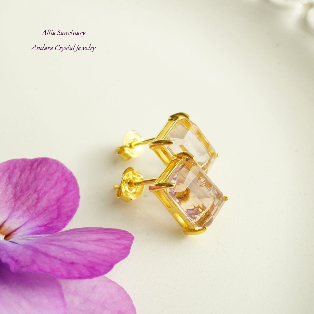 アンダラクリスタル(ソブリンアメジスト)エメラルドカットピアスポスト Slver925製