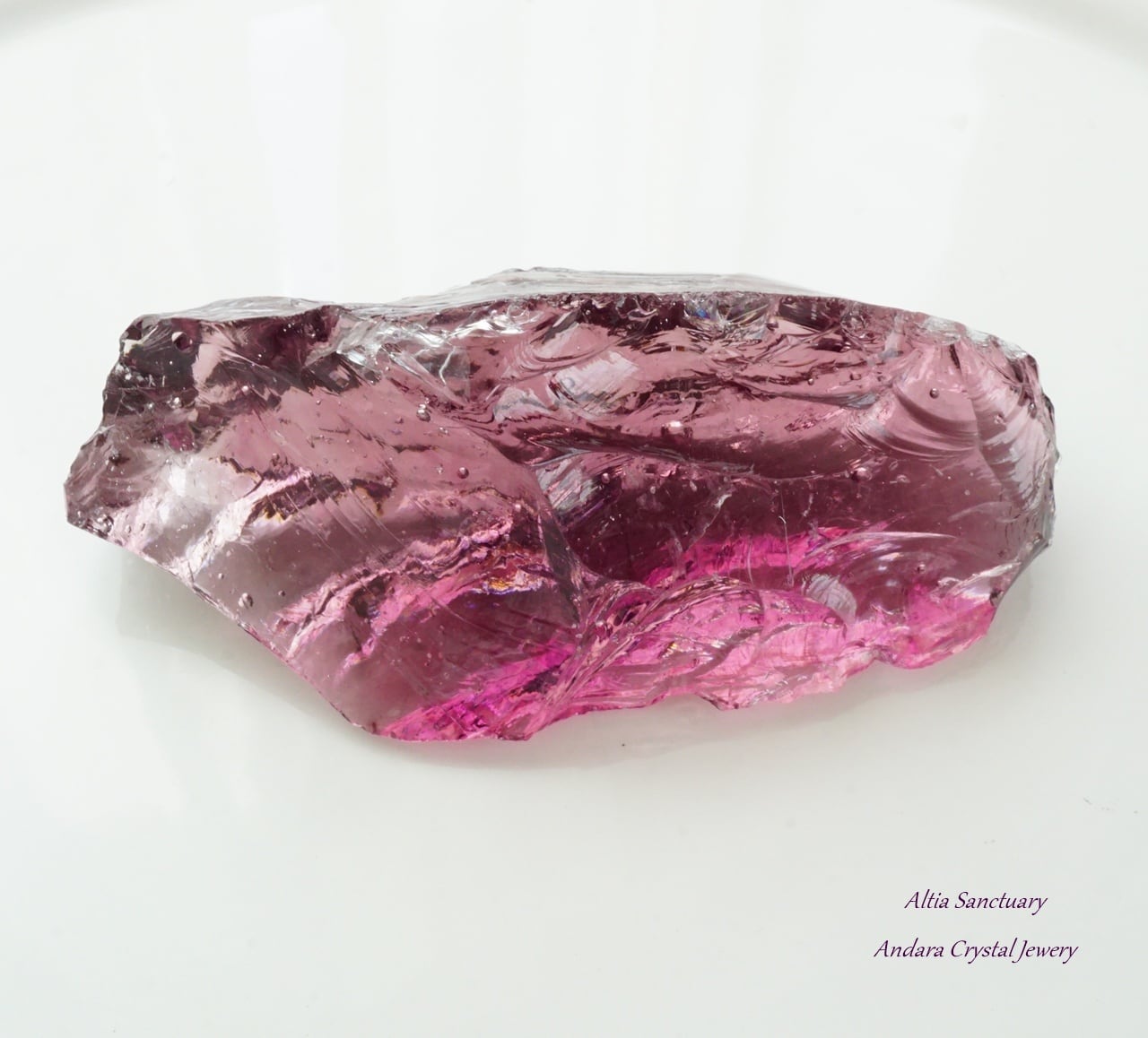 アンダラクリスタルは、黒曜石(オブシディアン)に似たガラス質で、ゴールド・シルバー・イリジウム・ロジウム・クロミニウム・プラチナなどの単原子成分が含まれており、レインボーの7色以上の美しいカラーを放つ魅力を持っています。