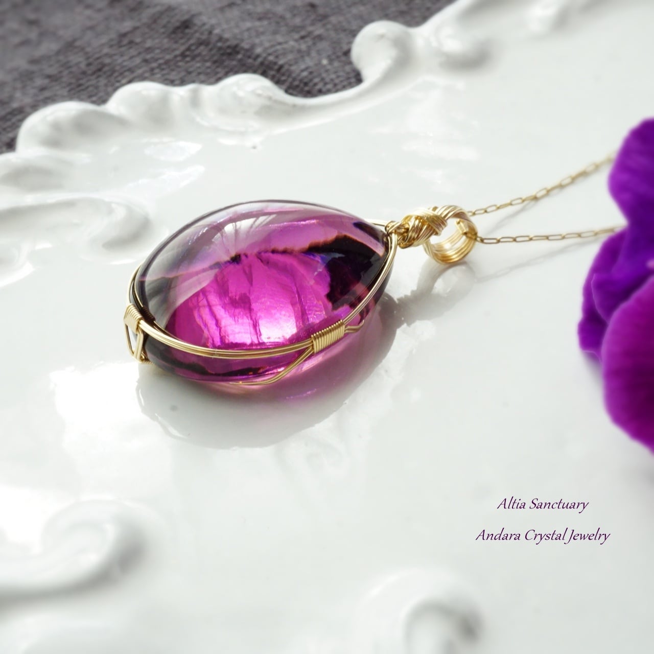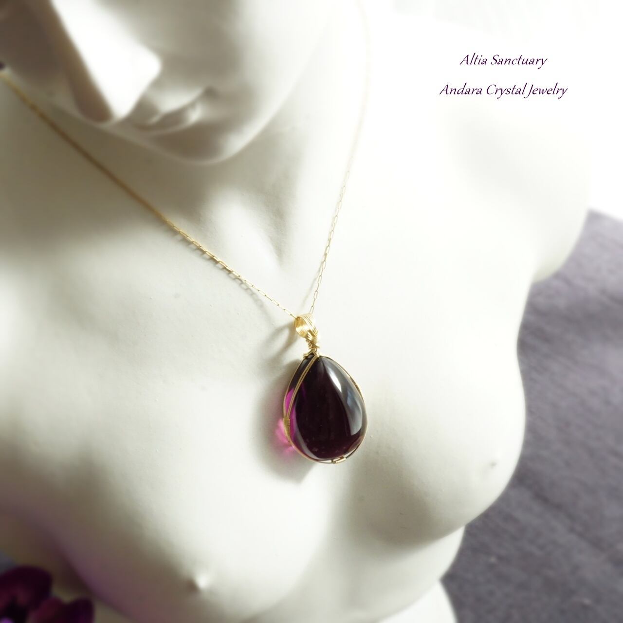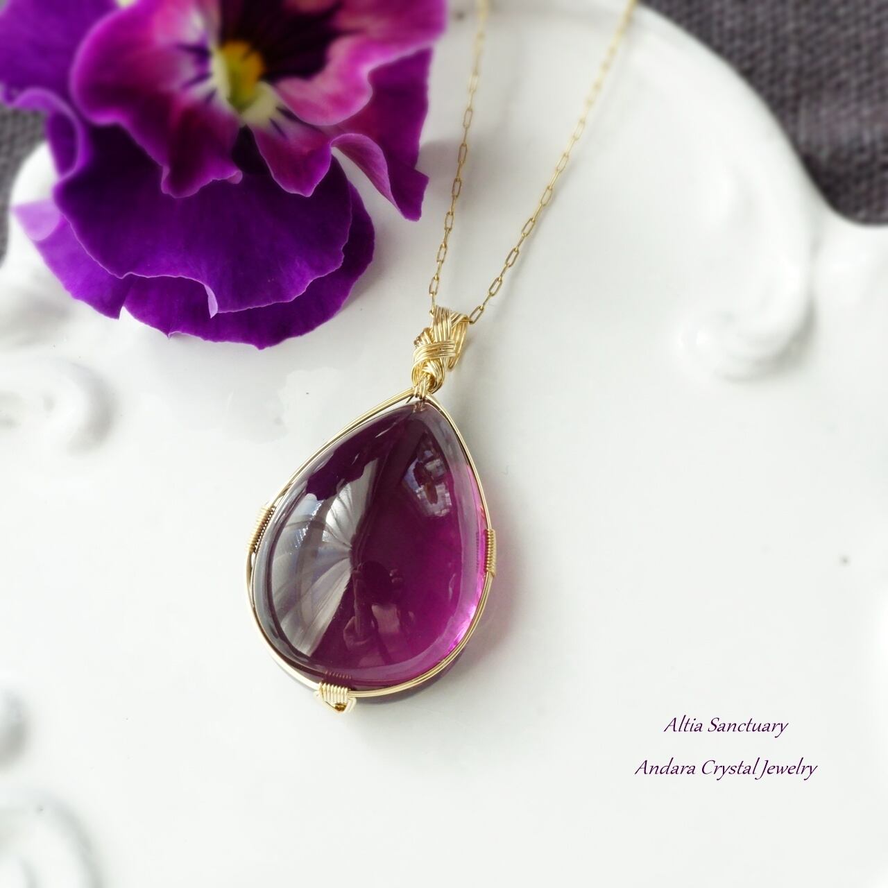 【W様オーダー】アンダラクリスタル(ソブリンアメジスト)しずく 女神巻き®ペンダントトップ*