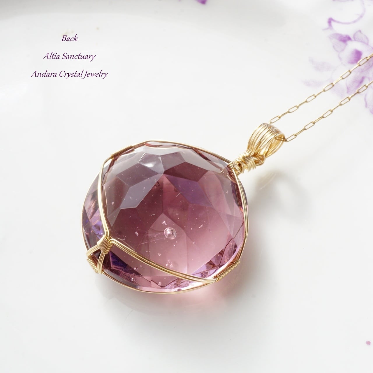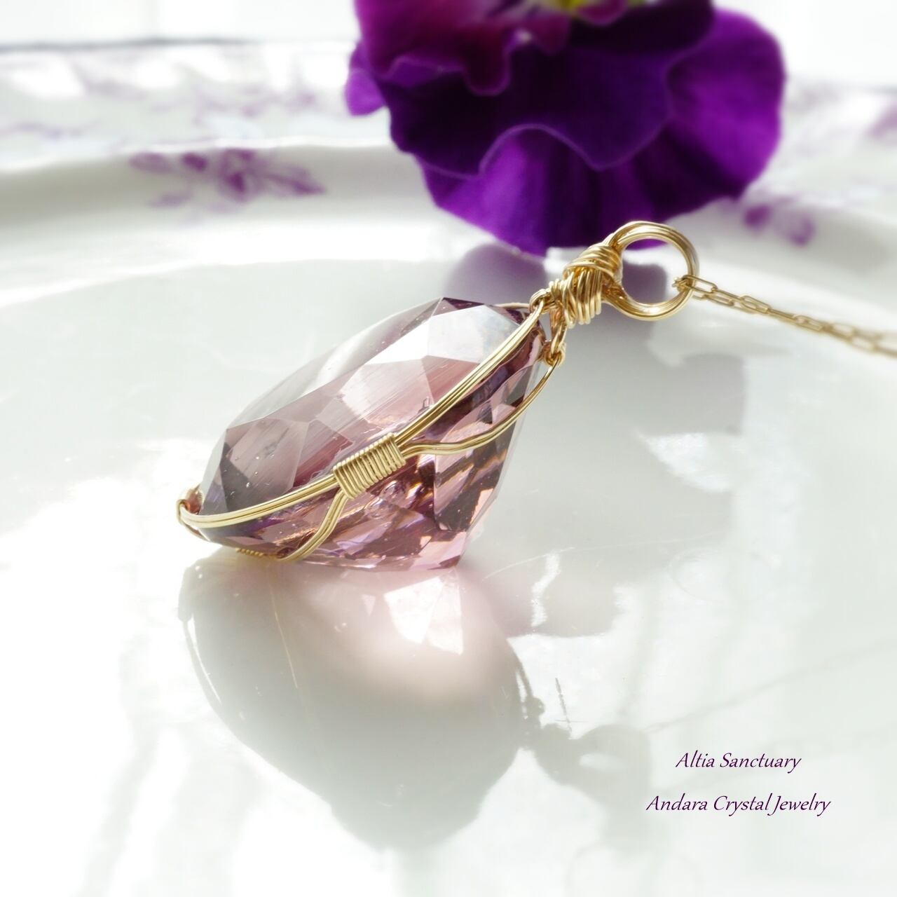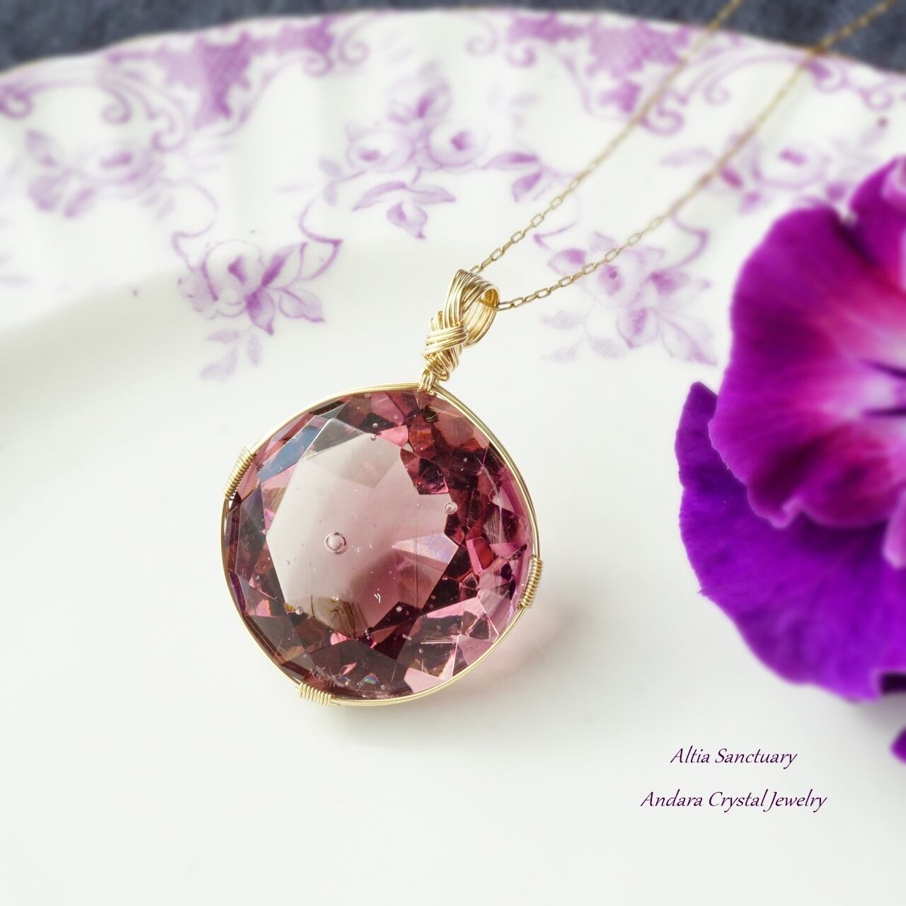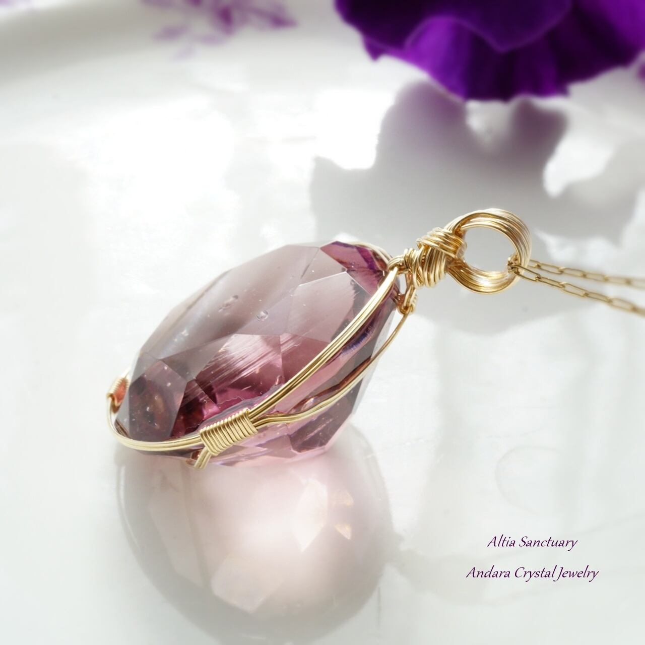 【H様オーダー】アンダラクリスタル(ソブリンアメジスト)ダイヤモンドカット女神巻き®ペンダントトップ*