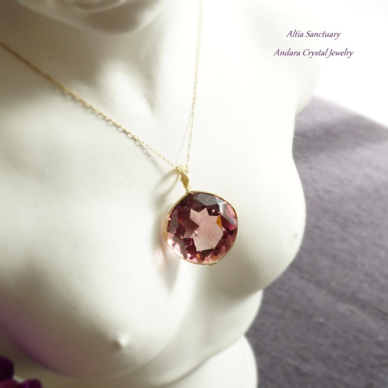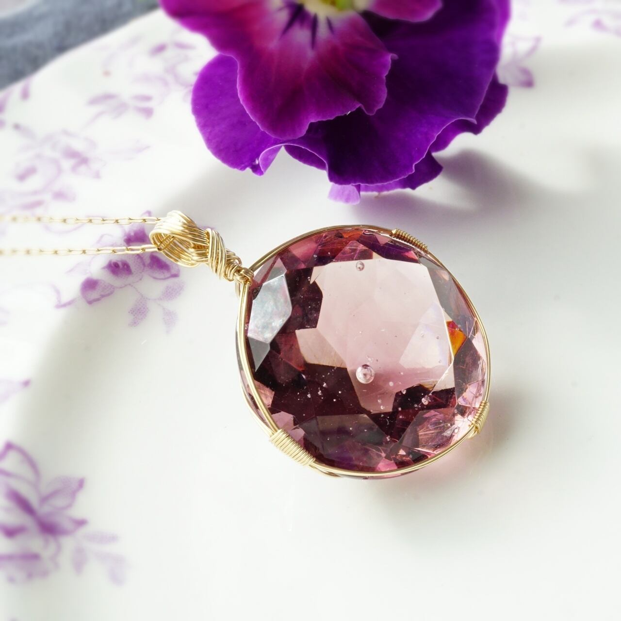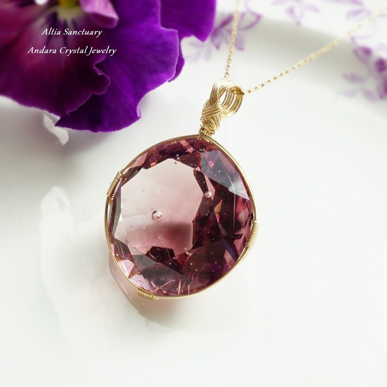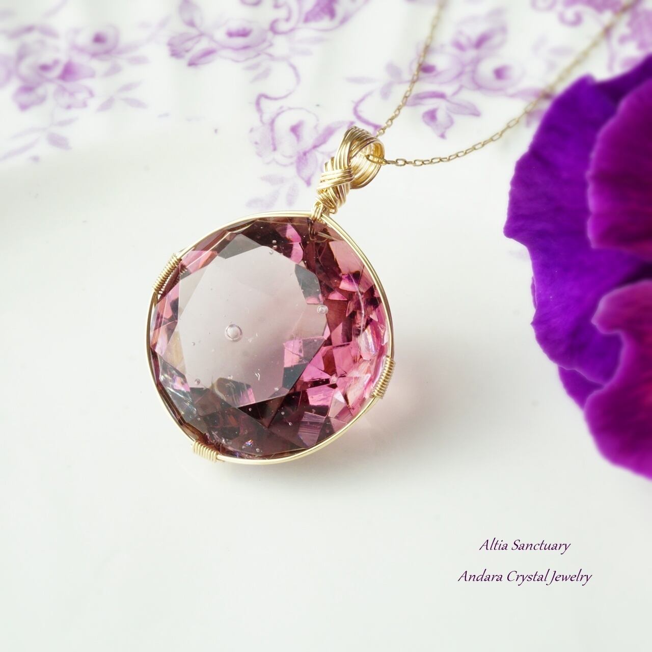 【H様オーダー】アンダラクリスタル(ソブリンアメジスト)ダイヤモンドカット女神巻き®ペンダントトップ*
