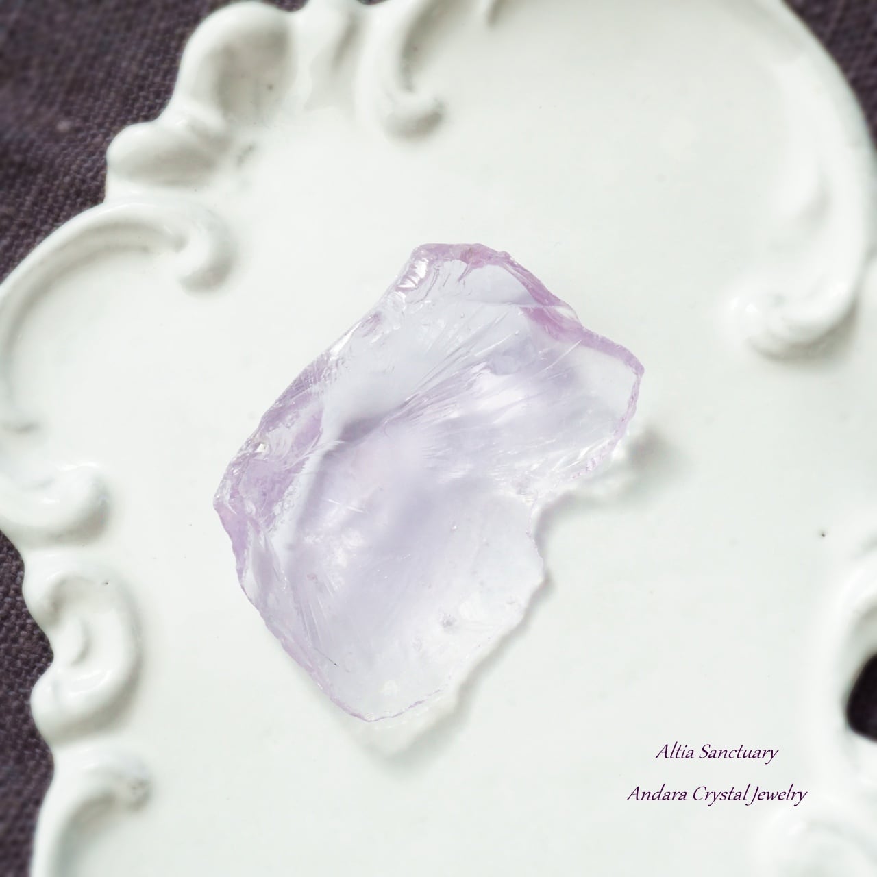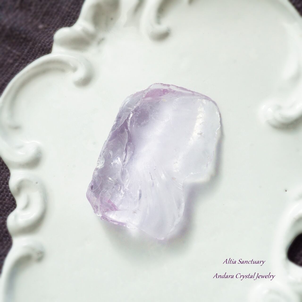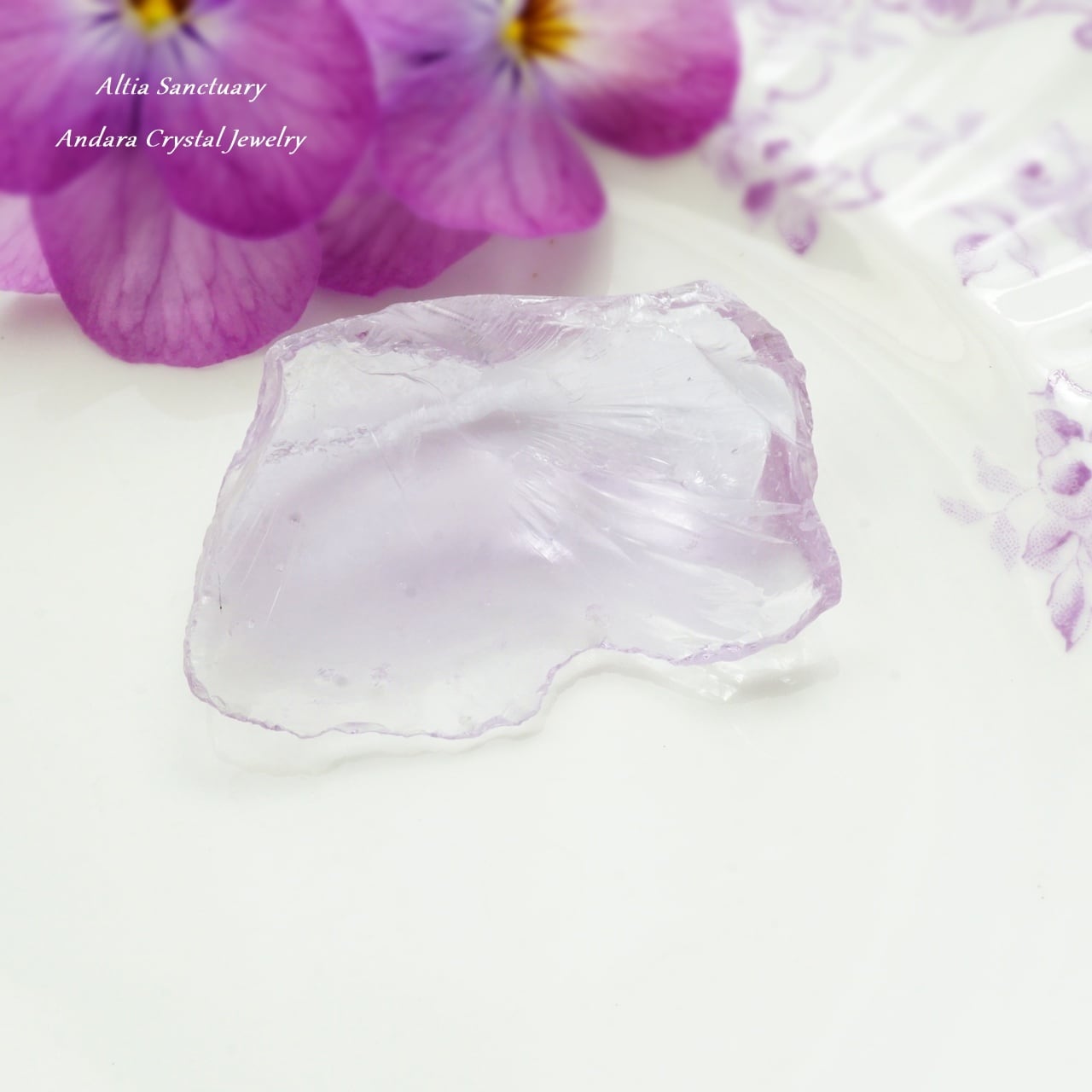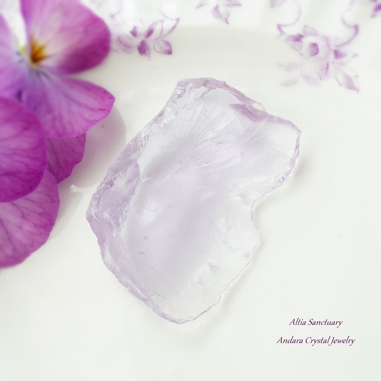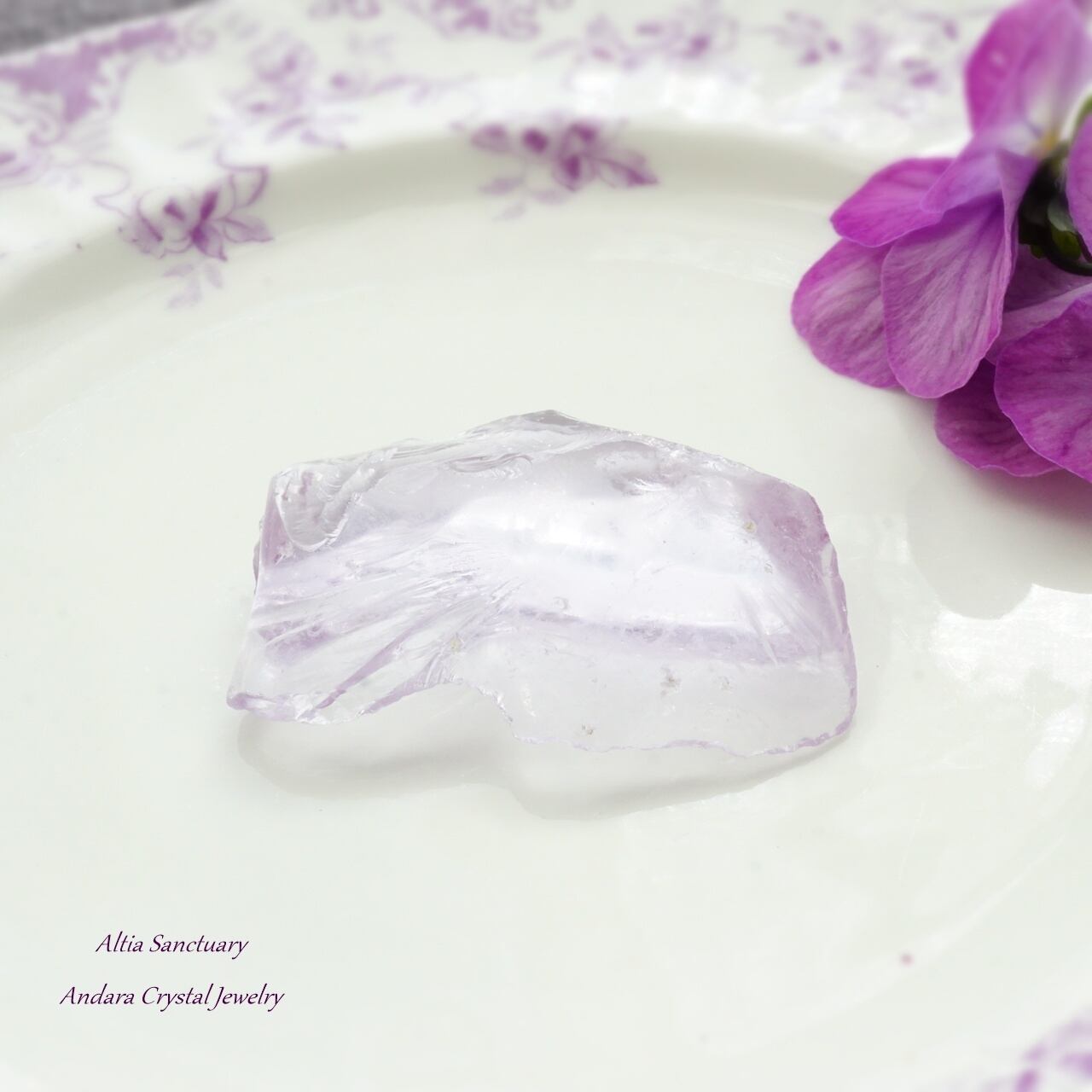 ローズの花びらのような優美なアンダラクリスタル「Rose de France」です。こちらのローズ ド フランスは、アメジストピンクのフレッシュな煌めきを放つ可憐で美しいアンダラクリスタルです。裏面が少し白くなっています。