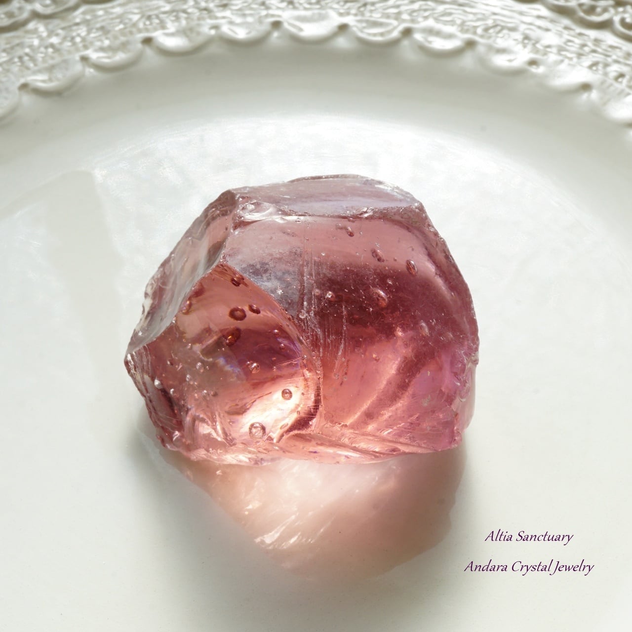 ピンクがかったアメジストにゴールドのハイライトが入ったソフィア・アンダラは、源の本質と精神を表現しています。この普遍的な精神と原理は、強力な個人的な次元、つまりインスピレーションの次元でもあります。