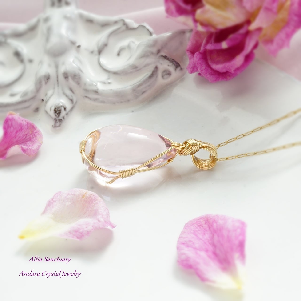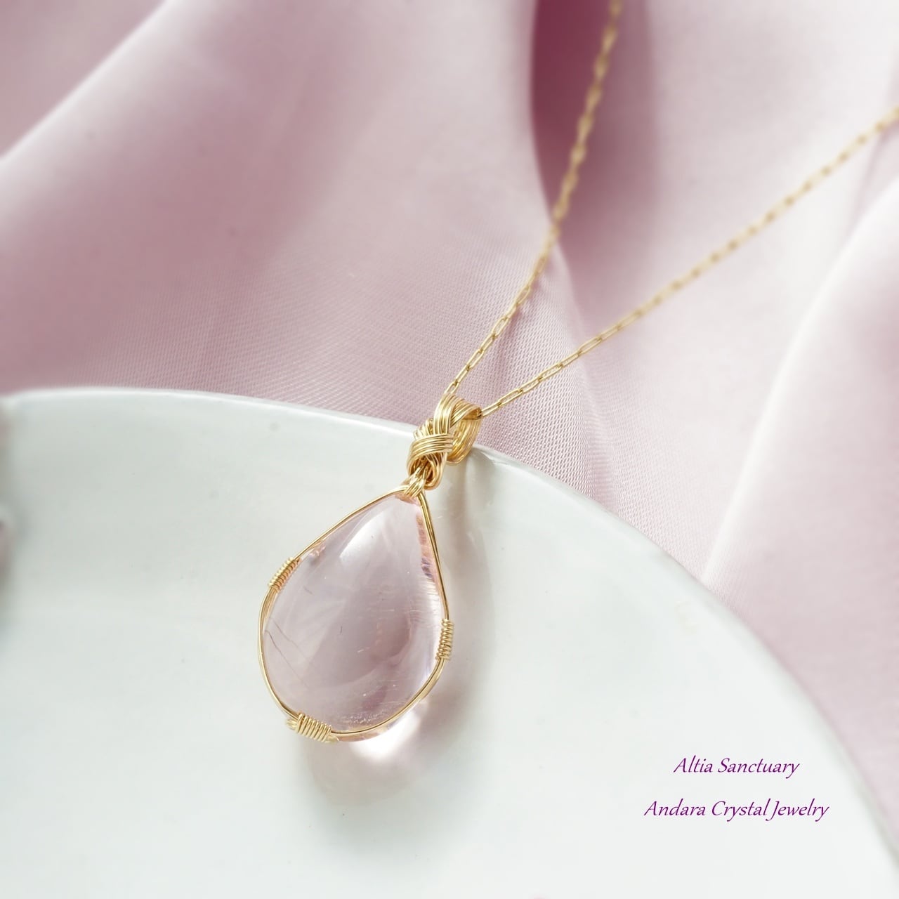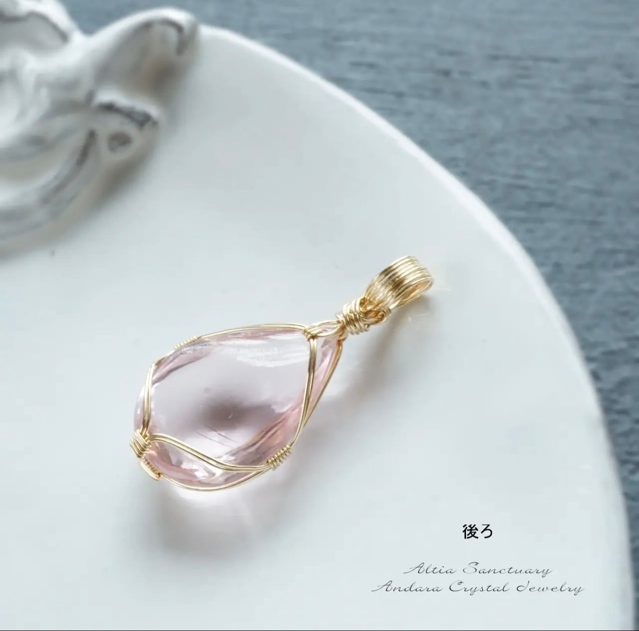 レア!アンダラクリスタル(HGWピンク)しずく女神巻き®プチペンダントトップ