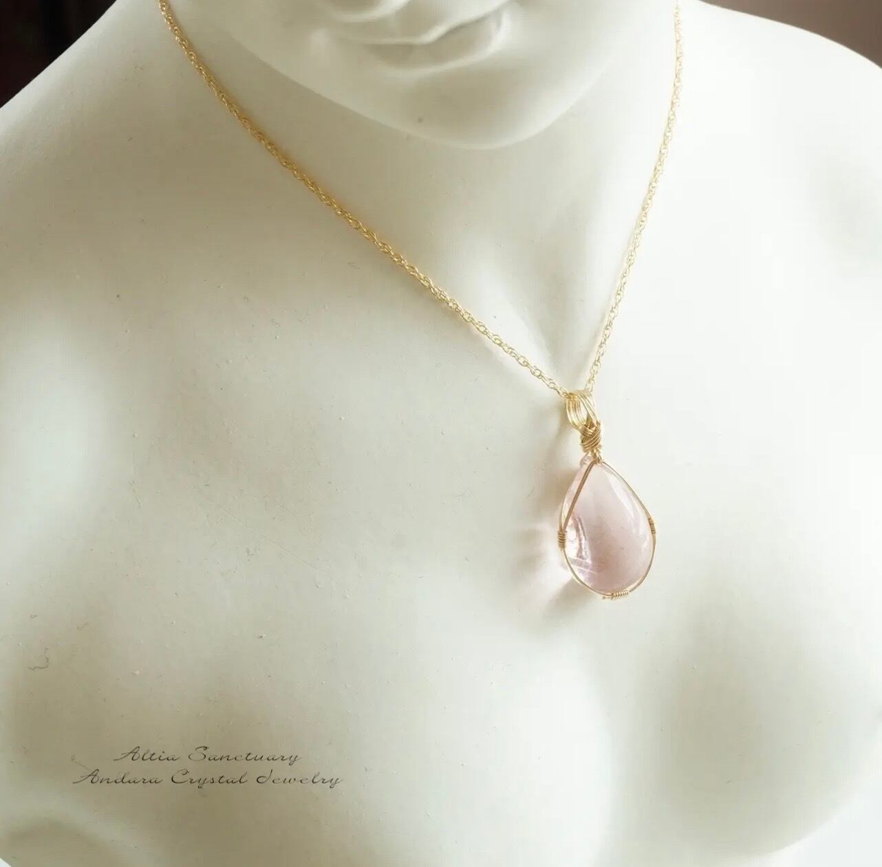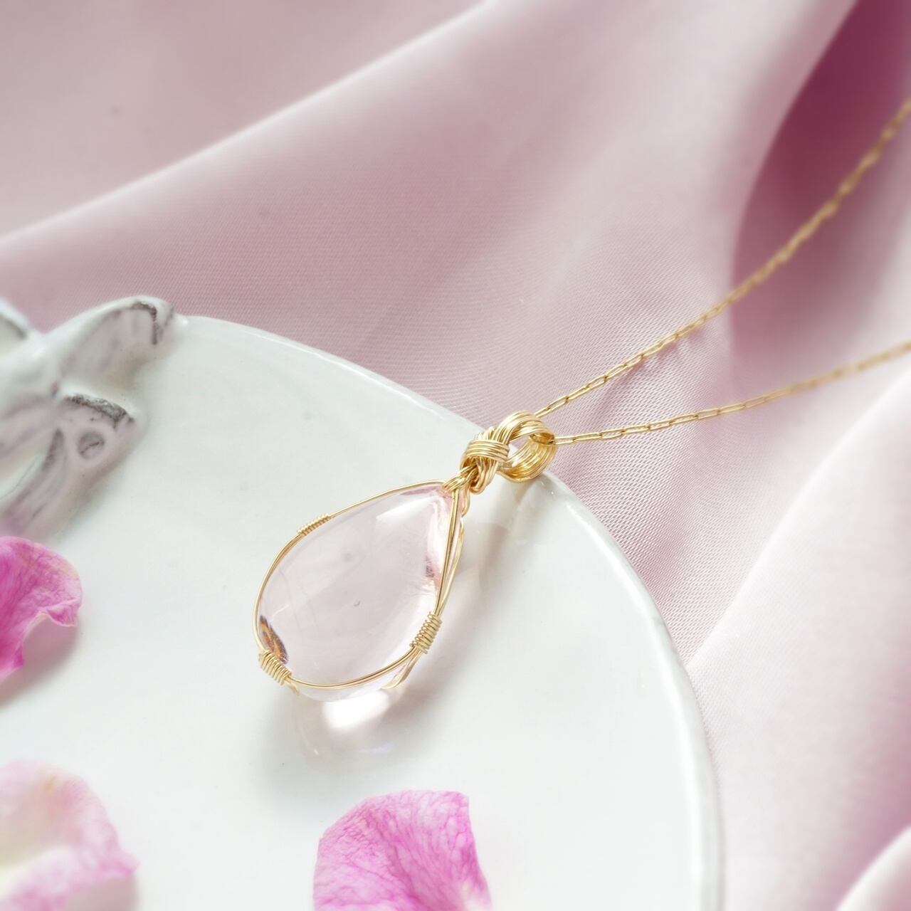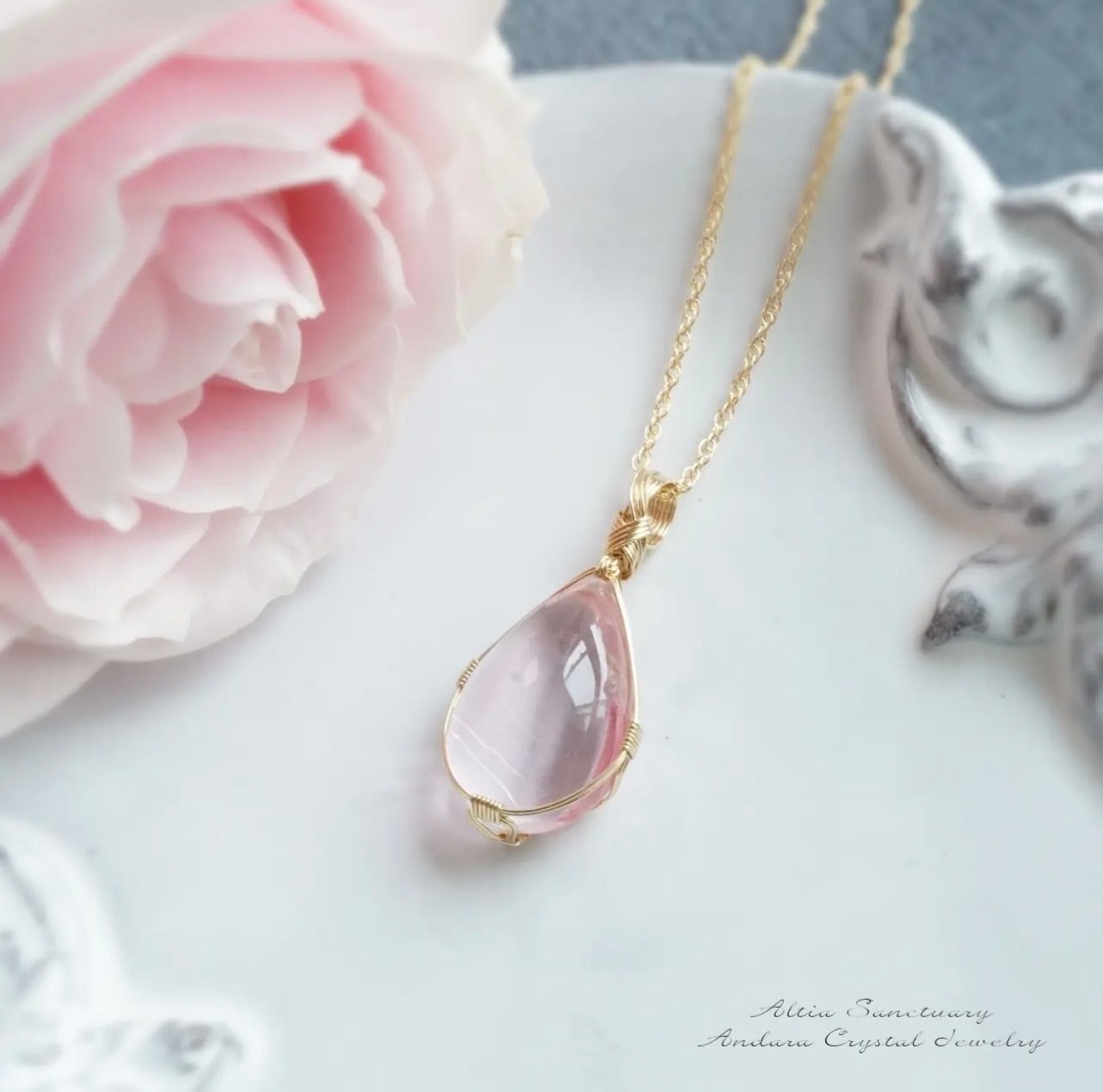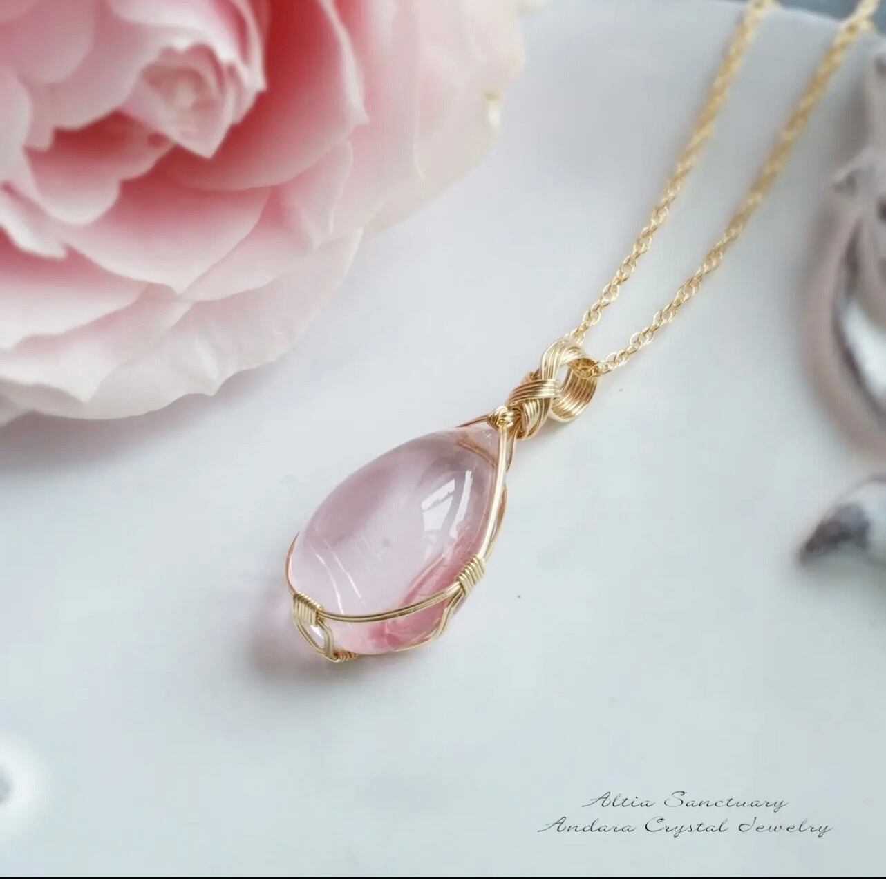 レア!アンダラクリスタル(HGWピンク)しずく女神巻き®プチペンダントトップ