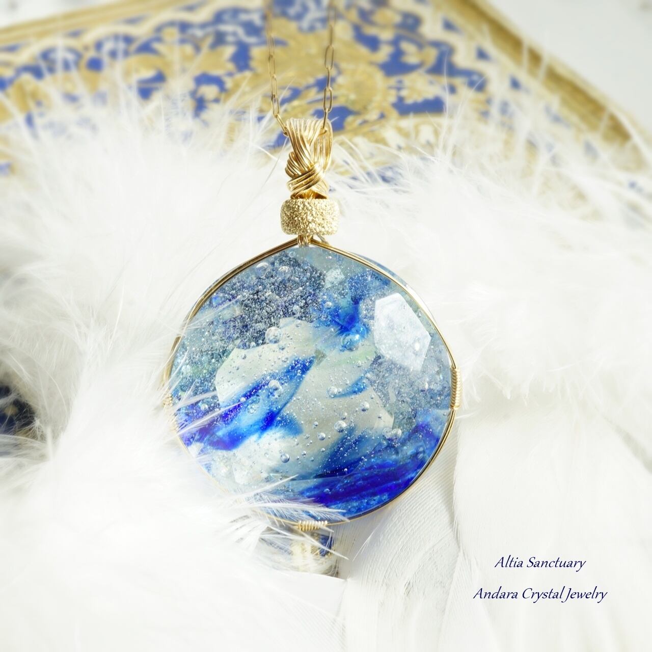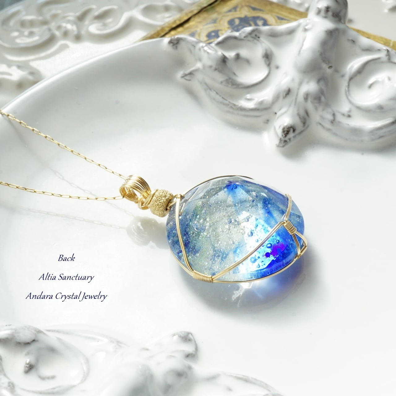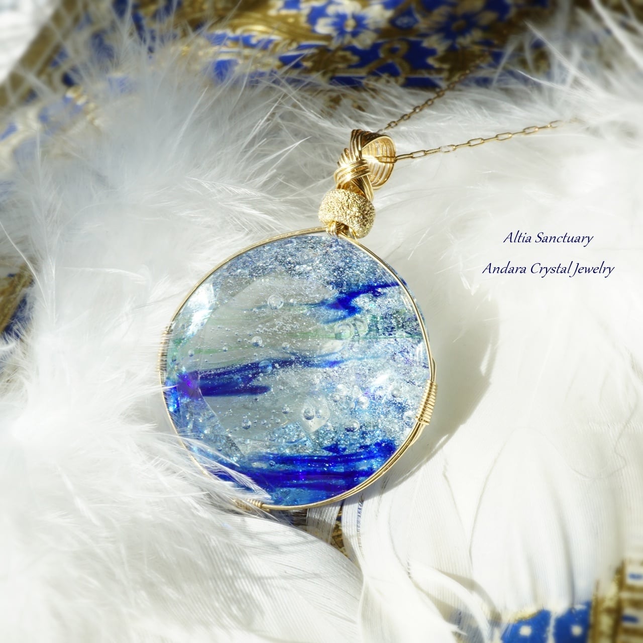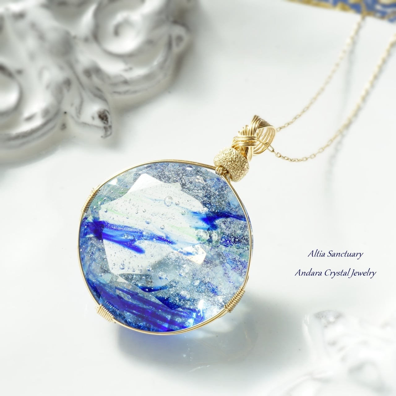 きらめく神秘的なマルチブルーアンダラクリスタルのダイヤモンドカット女神巻き®ペンダントです。